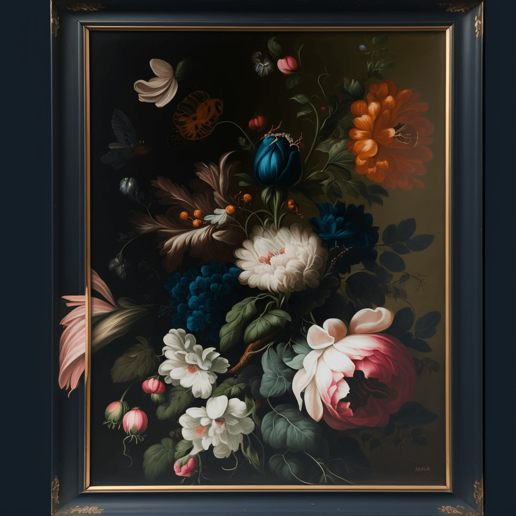 This painting features a beautifully arranged bouquet of flowers, showcasing the rich colors and intricate details characteristic of Dutch masterworks. The artwork exudes a sense of elegance and timeless beauty, capturing the essence of nature in a classic style.