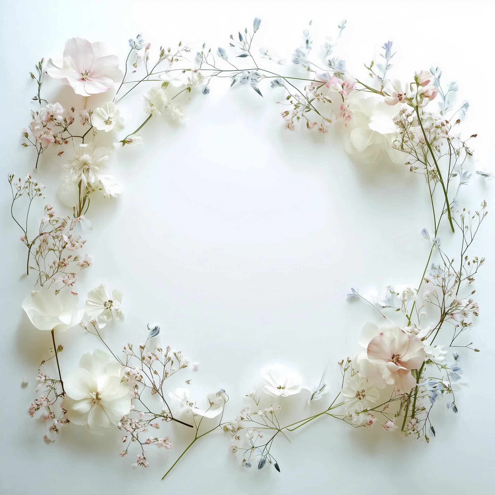 This image features a square frame intricately crafted from delicate flowers, providing an enchanting border. The soft and dreamy color palette creates an elegant atmosphere, perfect for various design purposes.