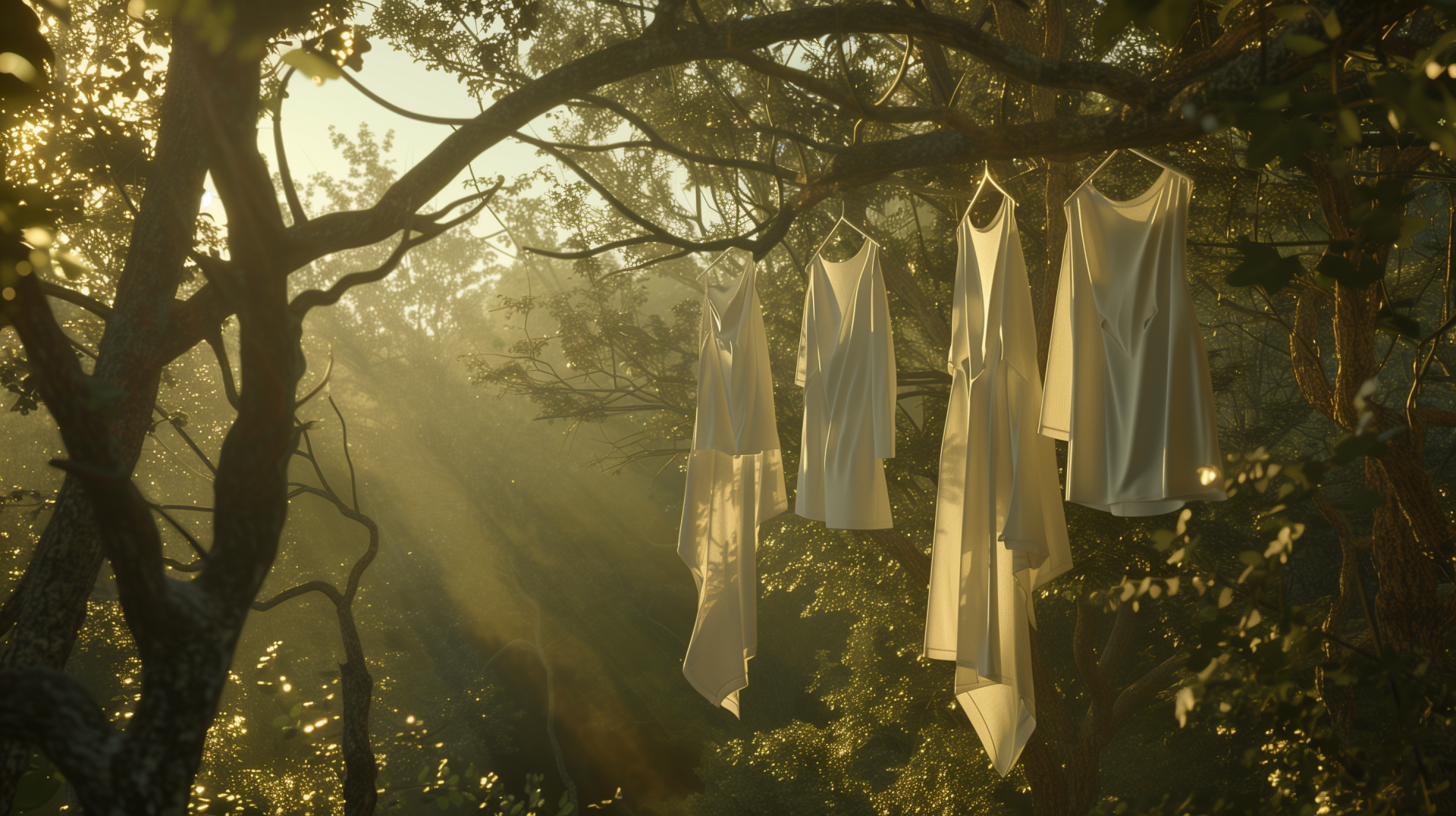 This image captures a serene open forest bathed in gentle sunlight, with scattered trees creating a peaceful atmosphere. The interplay of light and shadow enhances the natural beauty of the scene.