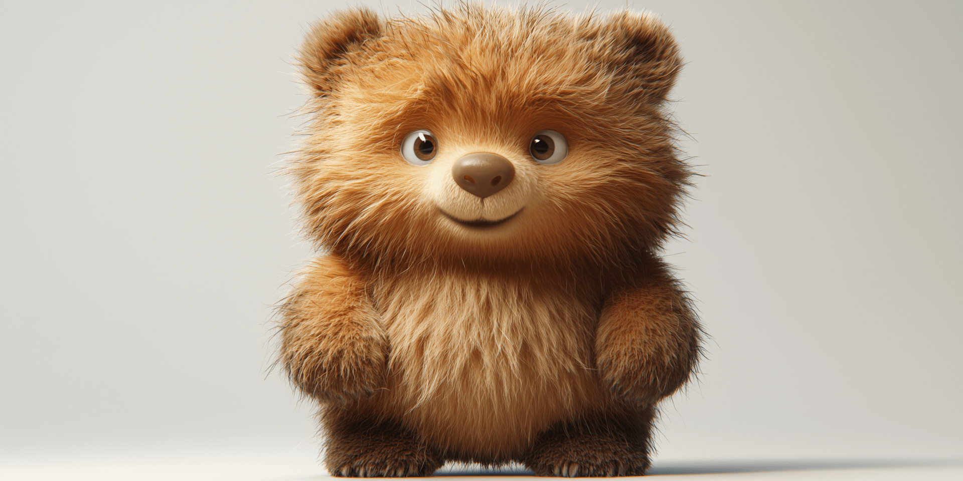 The image showcases a charming chubby bear with a soft, rounded body and a fluffy chest. The bear's warm expression and detailed fur texture stand out against a plain white background.