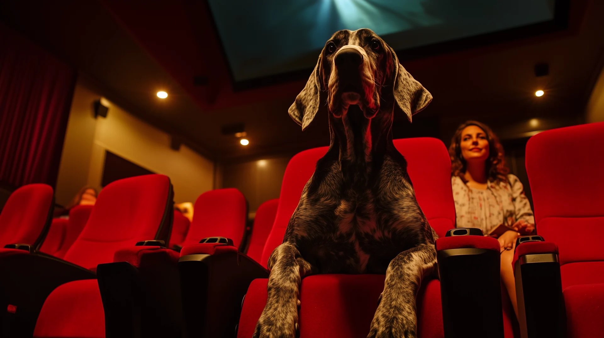 This whimsical illustration features a playful Great Dane casually laying atop a stylized human heart. The vibrant colors and cartoonish style give the image a lighthearted and affectionate feel.