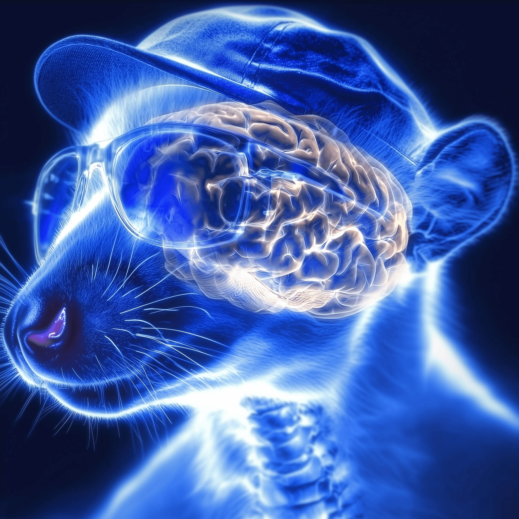 The image showcases an x-ray of a western ringtail possum's skull and neck, revealing its brain structure. The possum is humorously dressed with a cap and sunglasses, adding a playful touch to the scientific representation.