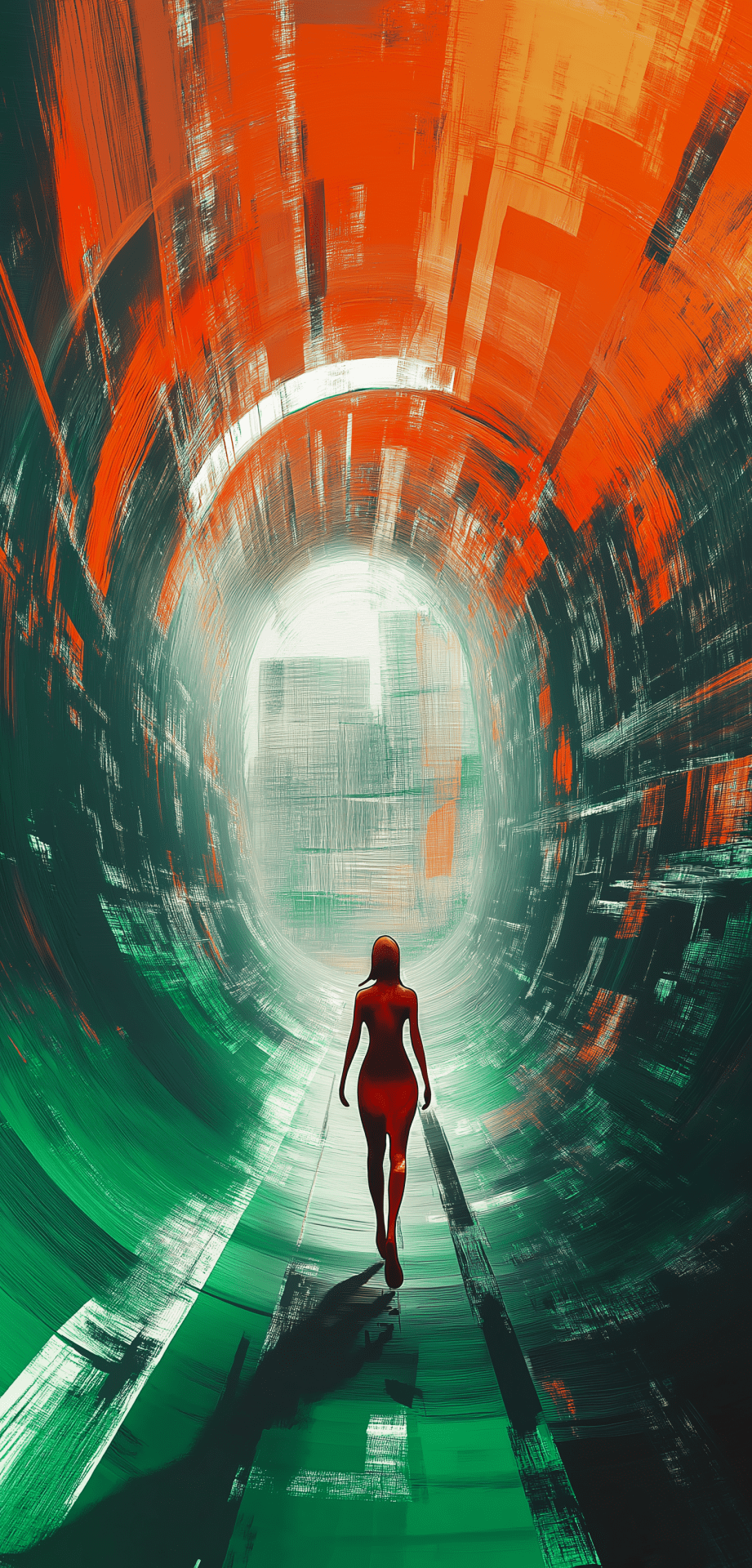 The image features a group of young adults depicted in a bright and abstract setting. The composition is filled with green and orange hues, creating an optimistic and cheerful atmosphere as they embrace a visionary future.