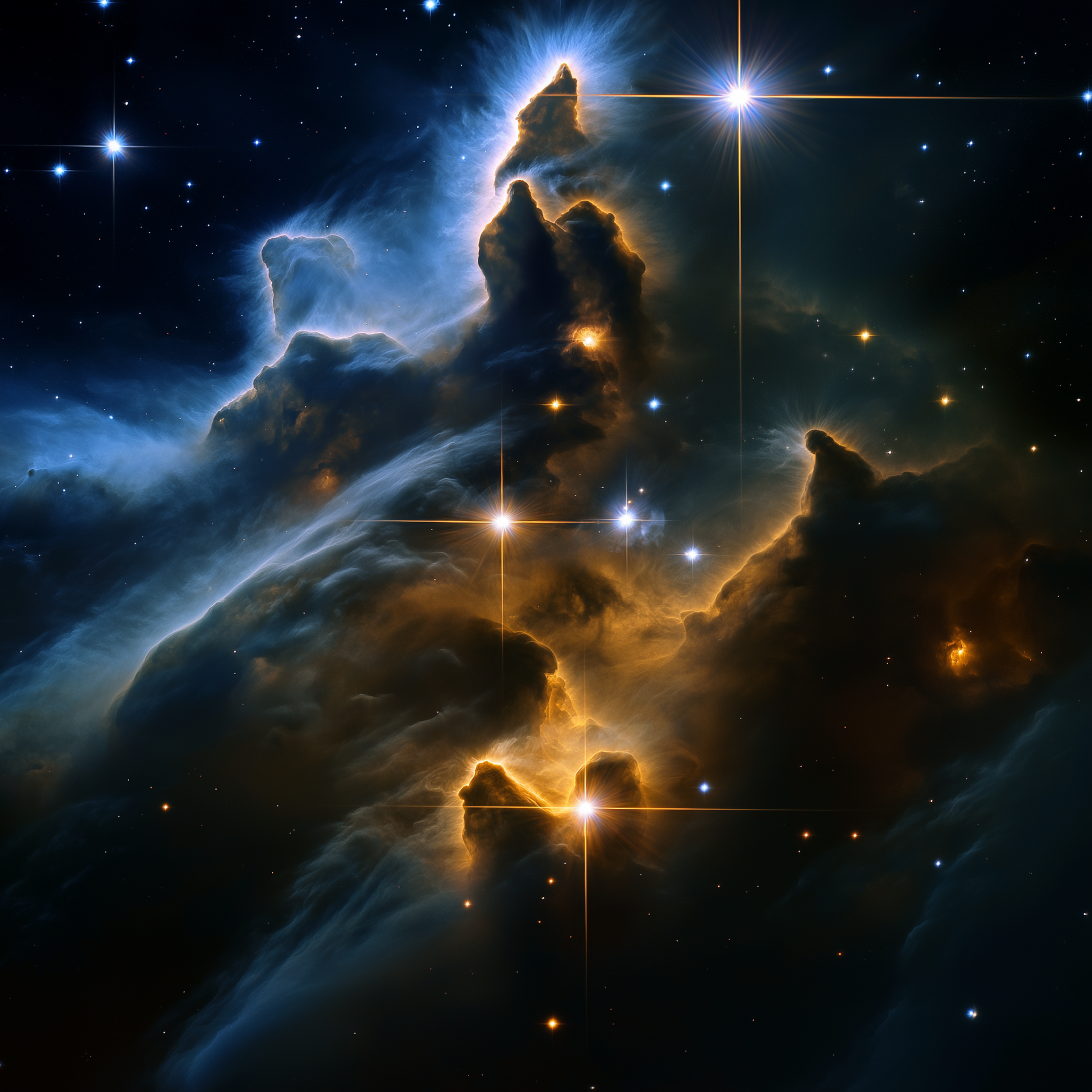 This image features a dark, hyper-realistic depiction of a nebula, showcasing a blend of vibrant colors and intricate details. The cosmic background evokes a sense of wonder and mystery, making it ideal for space enthusiasts.