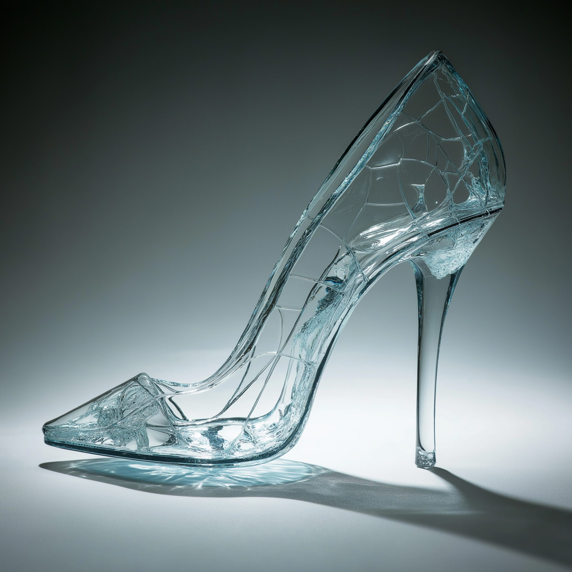 This image showcases an ultra-realistic high heel crafted from glass, reflecting light beautifully. The craftsmanship is impeccable, giving it a wearable appearance that captivates the eye.