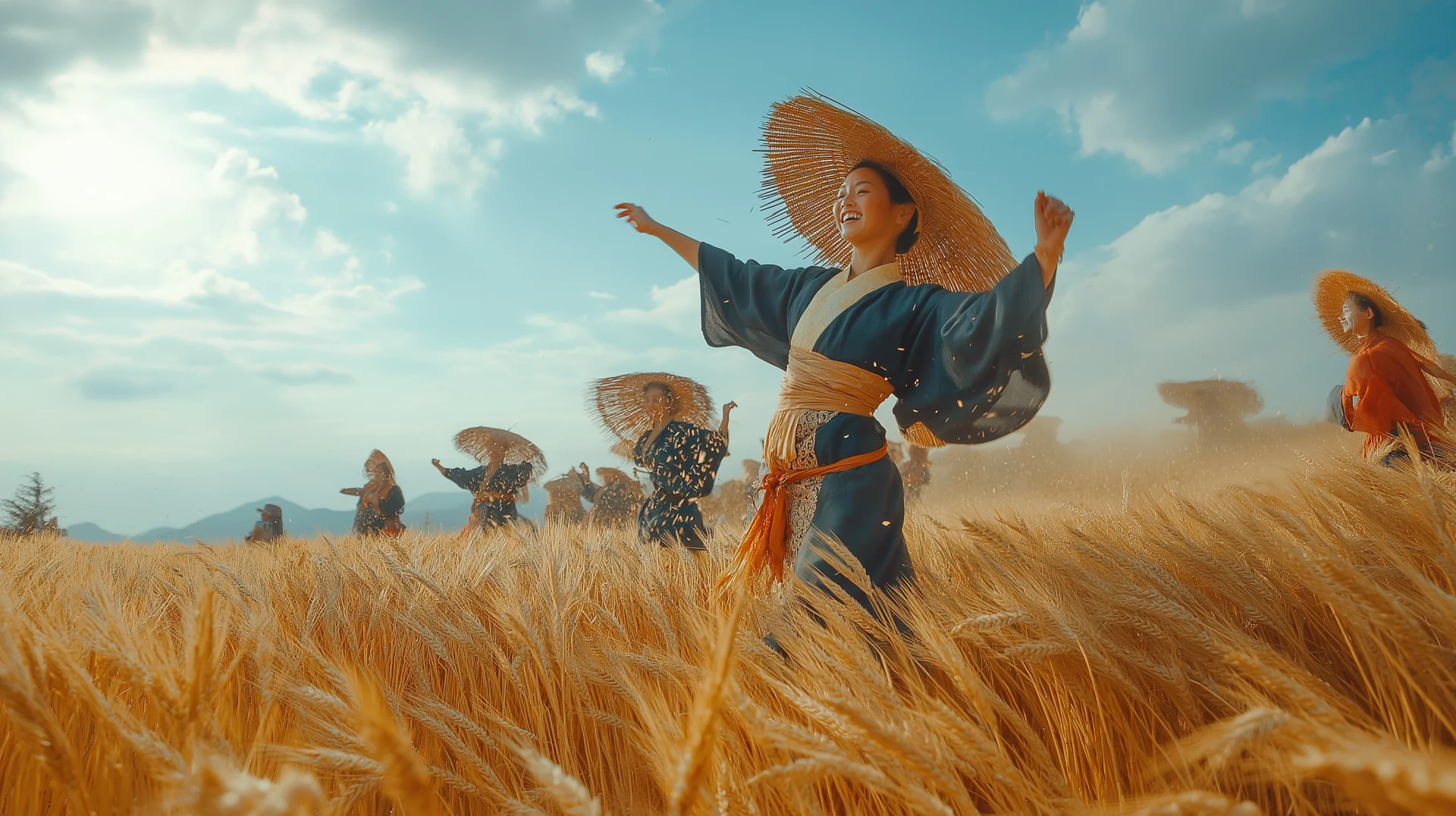 The image depicts a slender and handsome golden monkey standing happily in a mystical cave palace. Surrounded by clouds and mist, the atmosphere is ethereal, capturing the essence of ancient Chinese mythology.