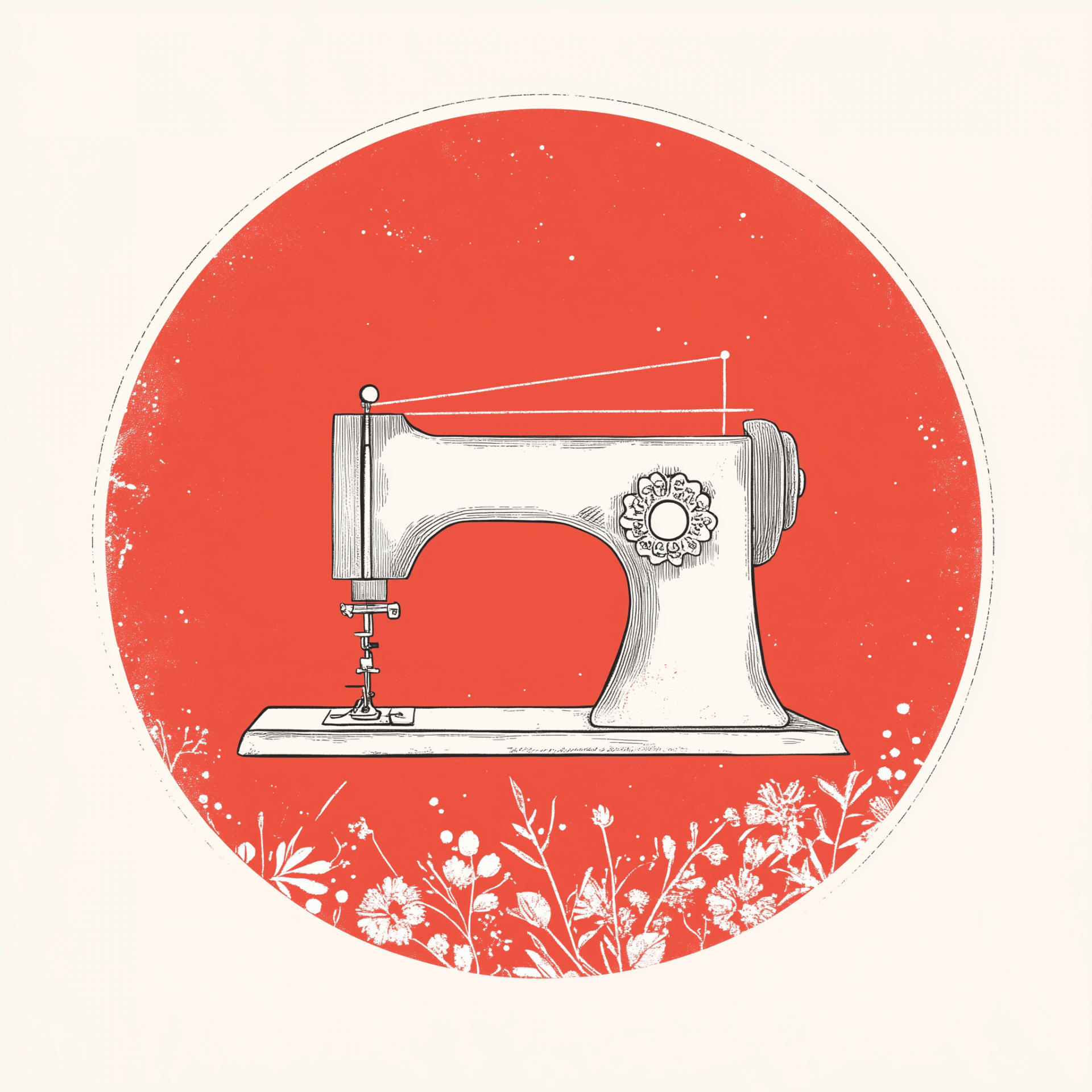 The image showcases a sleek and sophisticated circular logo. It features a striking red background that highlights intricate silver designs, evoking a sense of modern elegance.