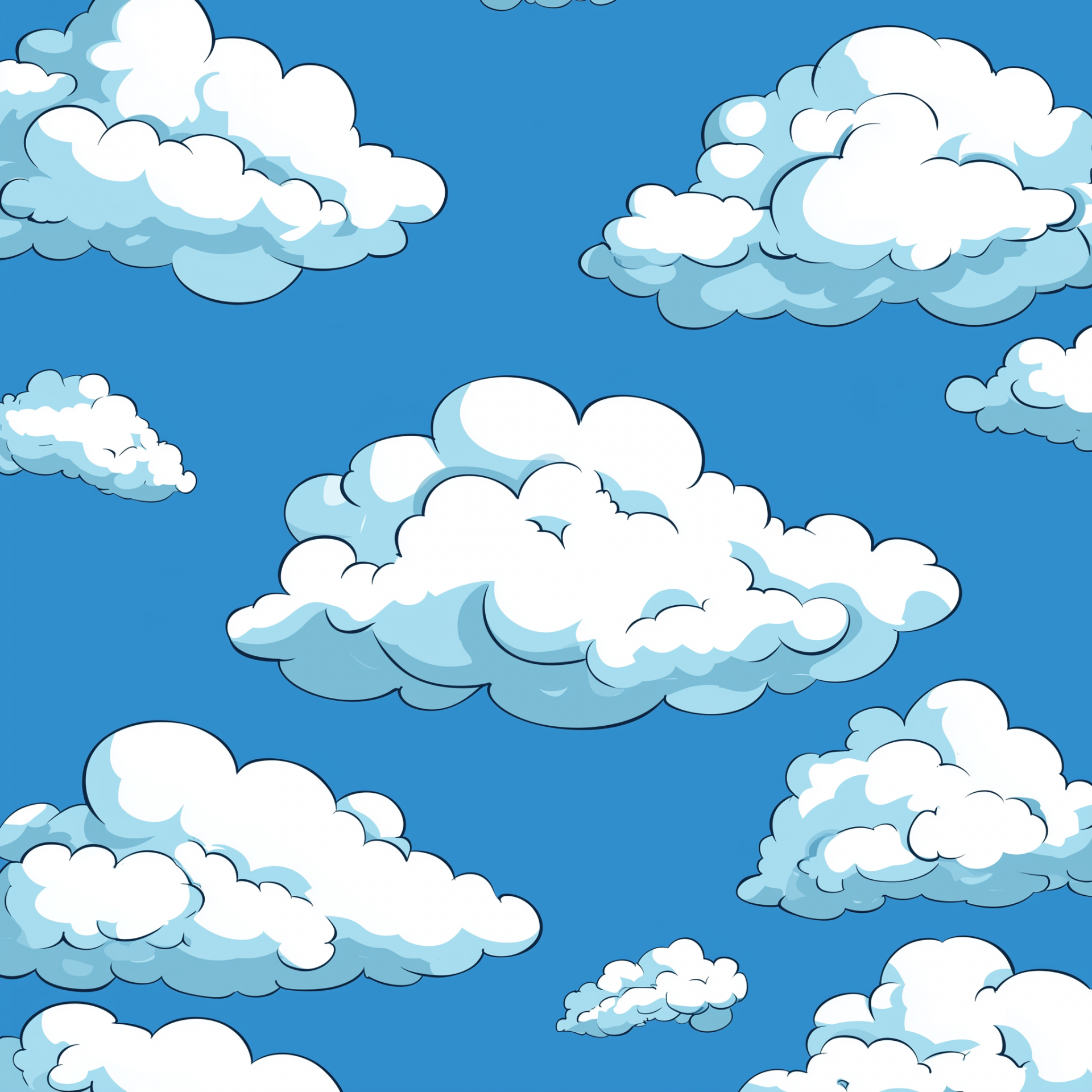 The image features fluffy white clouds set against a bright blue background, evoking a cheerful and whimsical feeling. The illustration is vibrant and colorful, resembling a playful comic style that's sure to bring a smile.