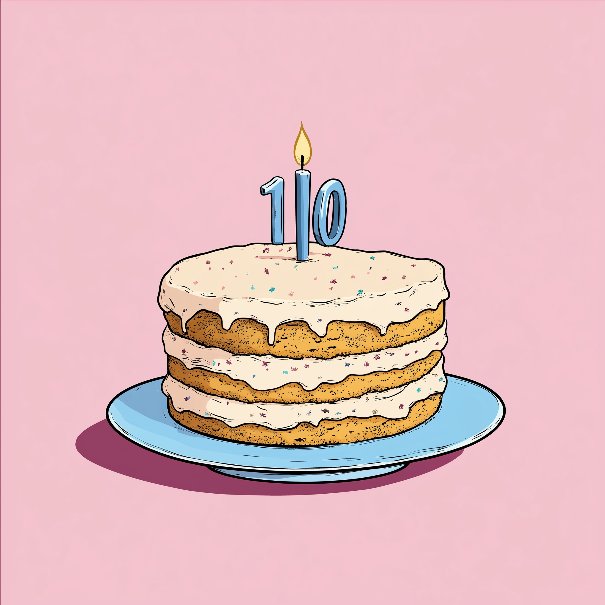 The image showcases a vibrant birthday cake adorned with colorful frosting and a prominent candle shaped like the number 10. The cake is surrounded by festive decorations, creating a joyful and celebratory atmosphere.