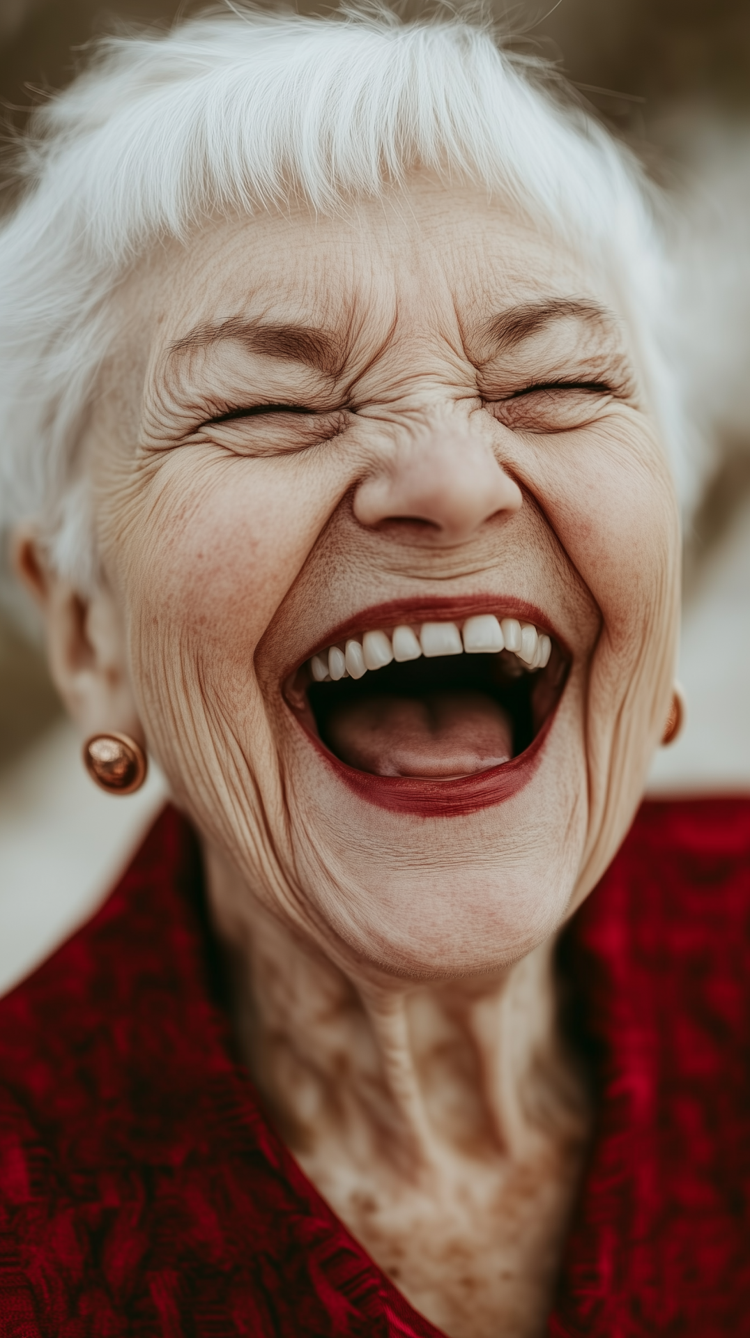 The image features a joyful woman wearing a vibrant red dress, celebrating a special moment with a chocolate box in her hands. Her expression radiates happiness, creating a warm and inviting atmosphere around her.