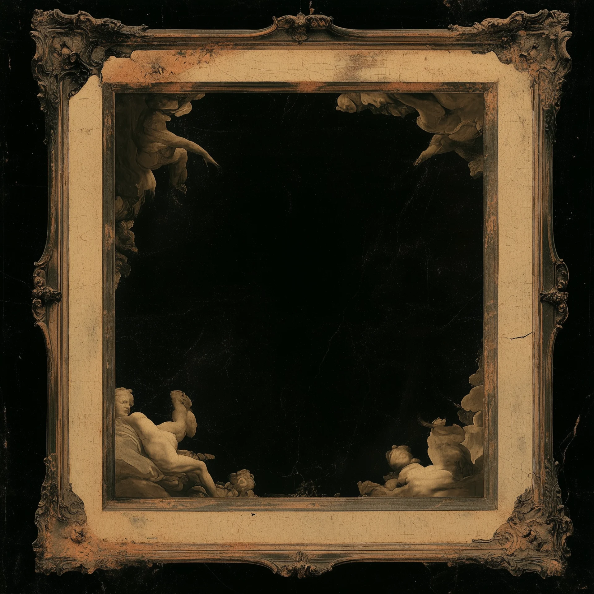 A fusion of 1960’s psychedelic art with gothic and mystic elements. Two figures in hypnotic Egyptian-themed exo suits are walking hand in hand through a golden grain field, with a black glass pyramid in the background, all resembling the style of Alphonse Mucha.