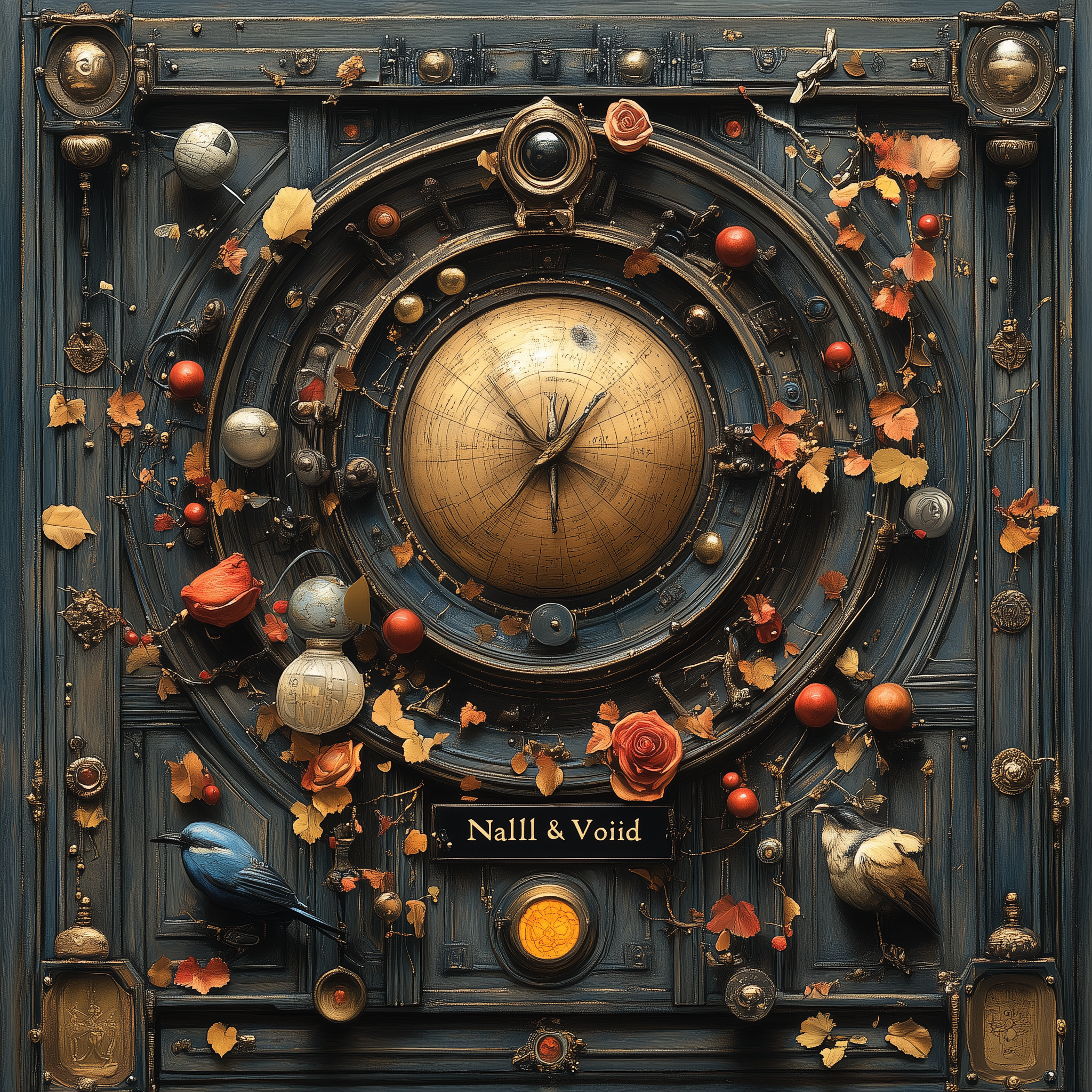 A highly detailed and intricate album cover featuring the words 'Nall & Void'. The design is complex and captivating, showcasing a mix of textures and patterns.