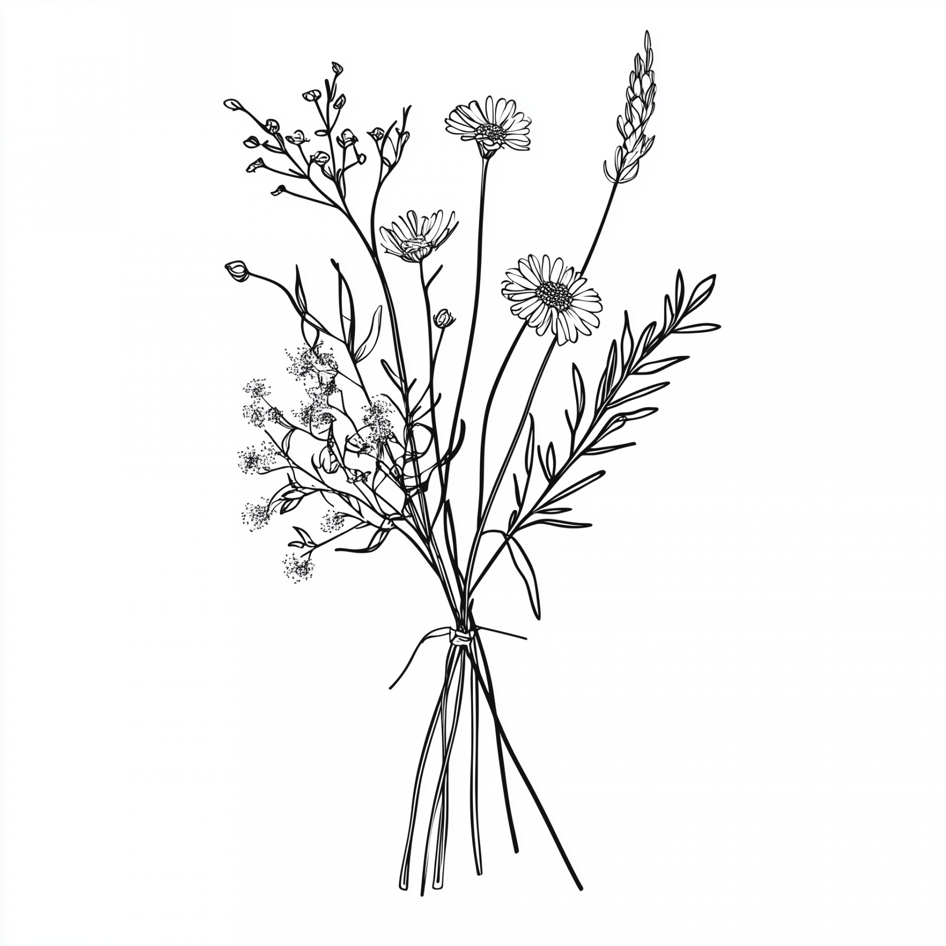 This illustration features a vector drawing of several twigs arranged into a delicate bouquet. The design is minimalistic with black lines and few details set against a clean white background, evoking a sense of simplicity and elegance.