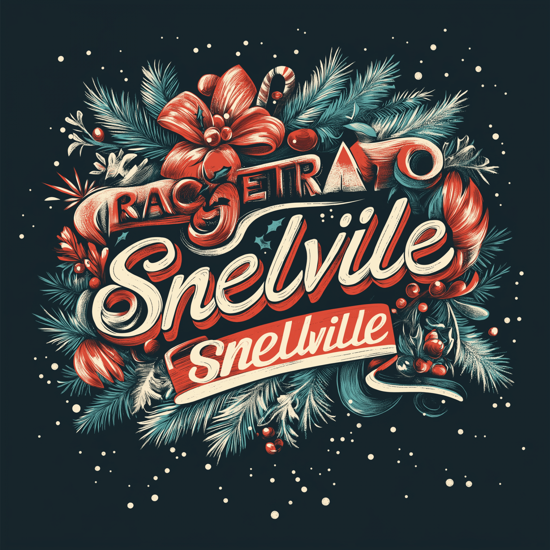 This image showcases vibrant typography that reads 'RACETRAC 55 Snellville', adorned with festive Christmas elements. The design is cheerful and evokes a holiday spirit, featuring colors and styles that are typical of Christmas celebrations.
