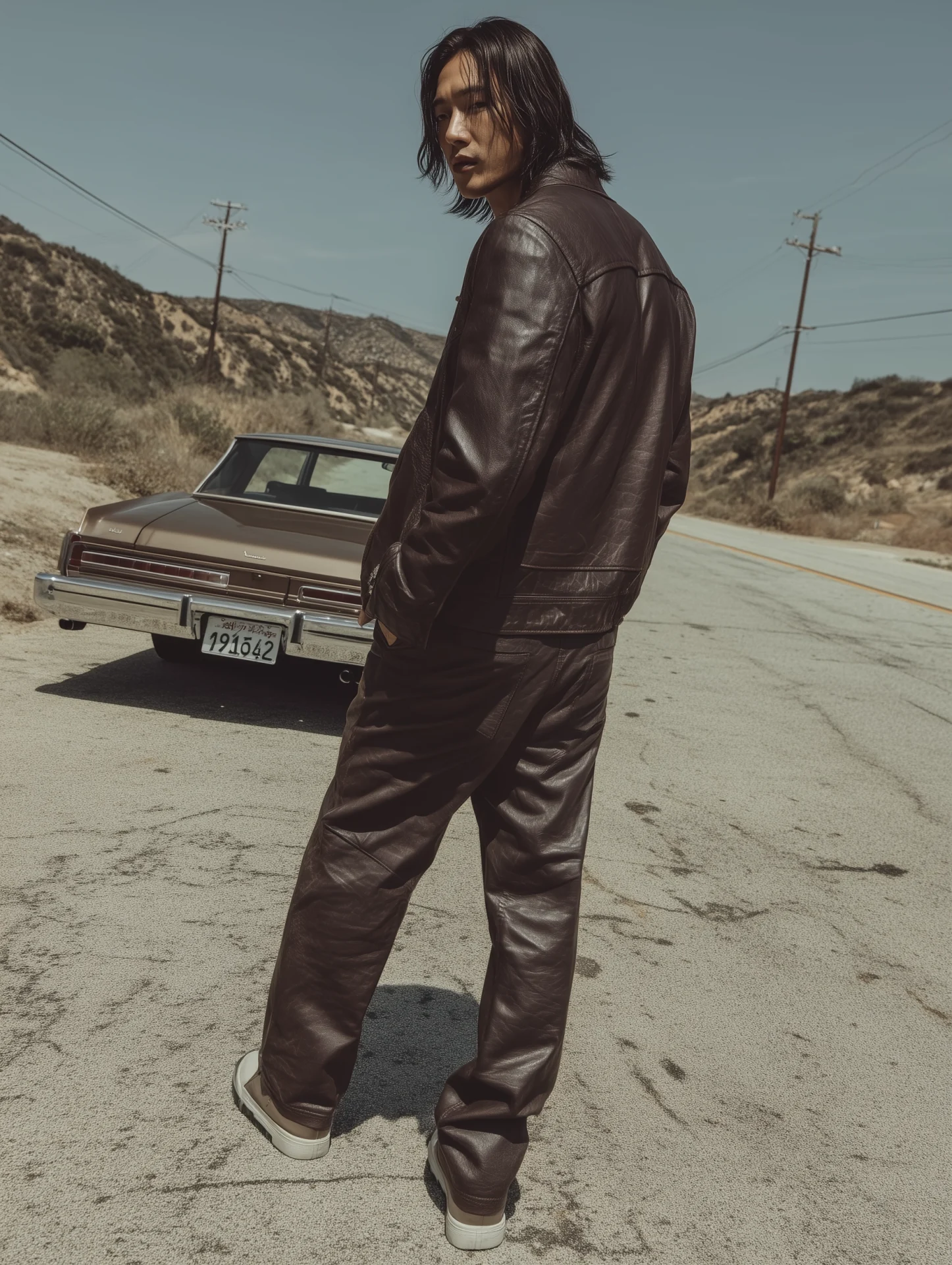 This portrait showcases a Korean female model from a frontal view, highlighting her freckled cheeks and unique hippie perm hairstyle. The photorealistic style combined with soft studio lighting creates a warm and inviting atmosphere.