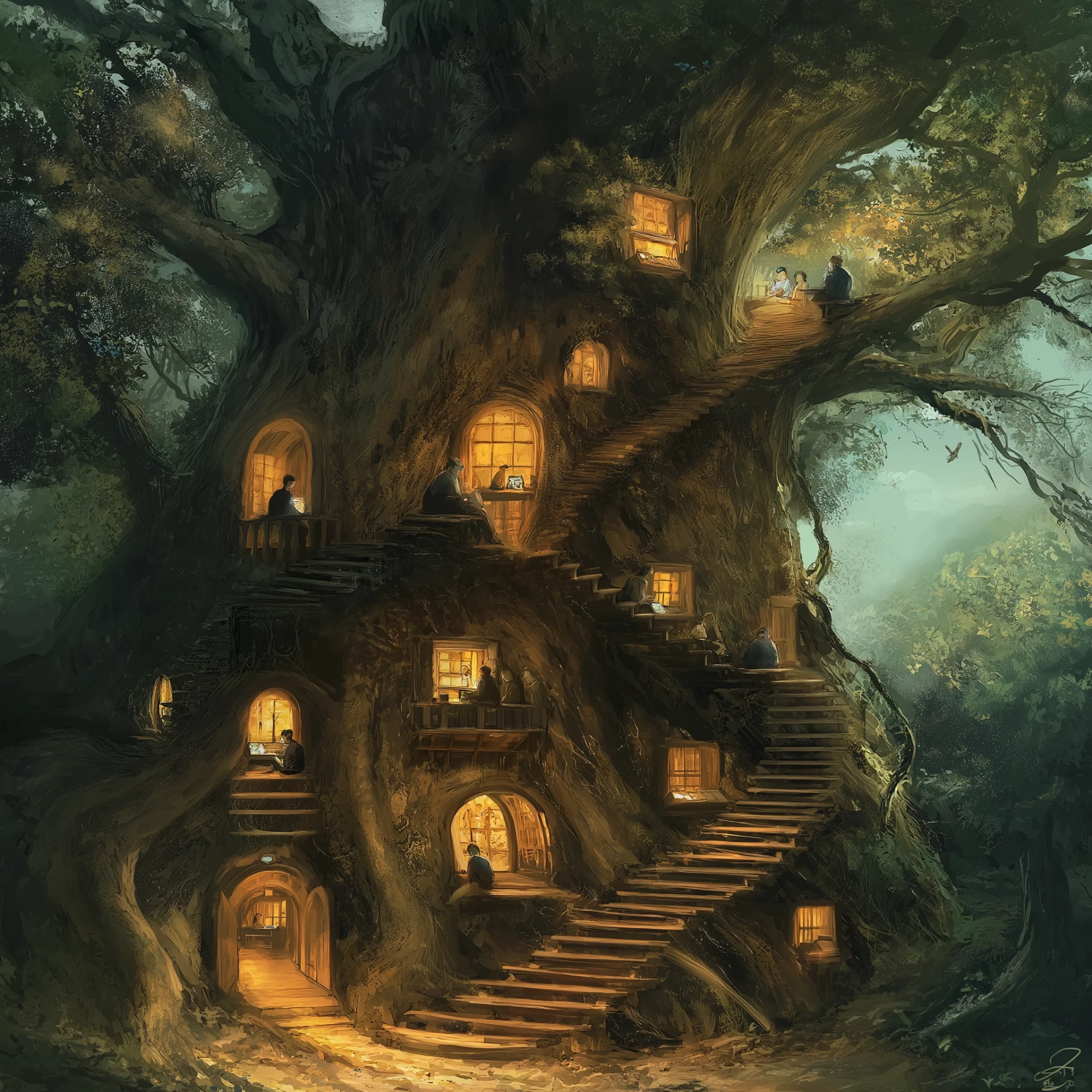 This image presents a realistic frontal view of a computer desk featuring a PC and monitor. The wide-angle perspective captures the details of the workspace, creating an immersive feel.