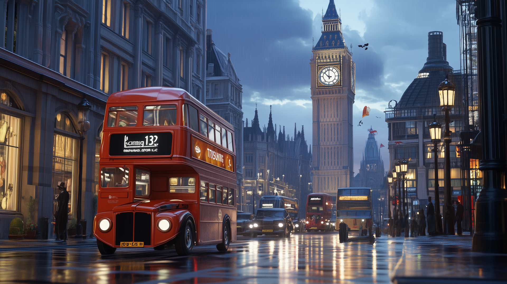The image captures a vibrant scene of London's Times Square, bustling with activity and illuminated by bright neon lights. The ultra-realistic details bring the atmosphere to life, showcasing the iconic architecture and lively crowd from an eye-level perspective.