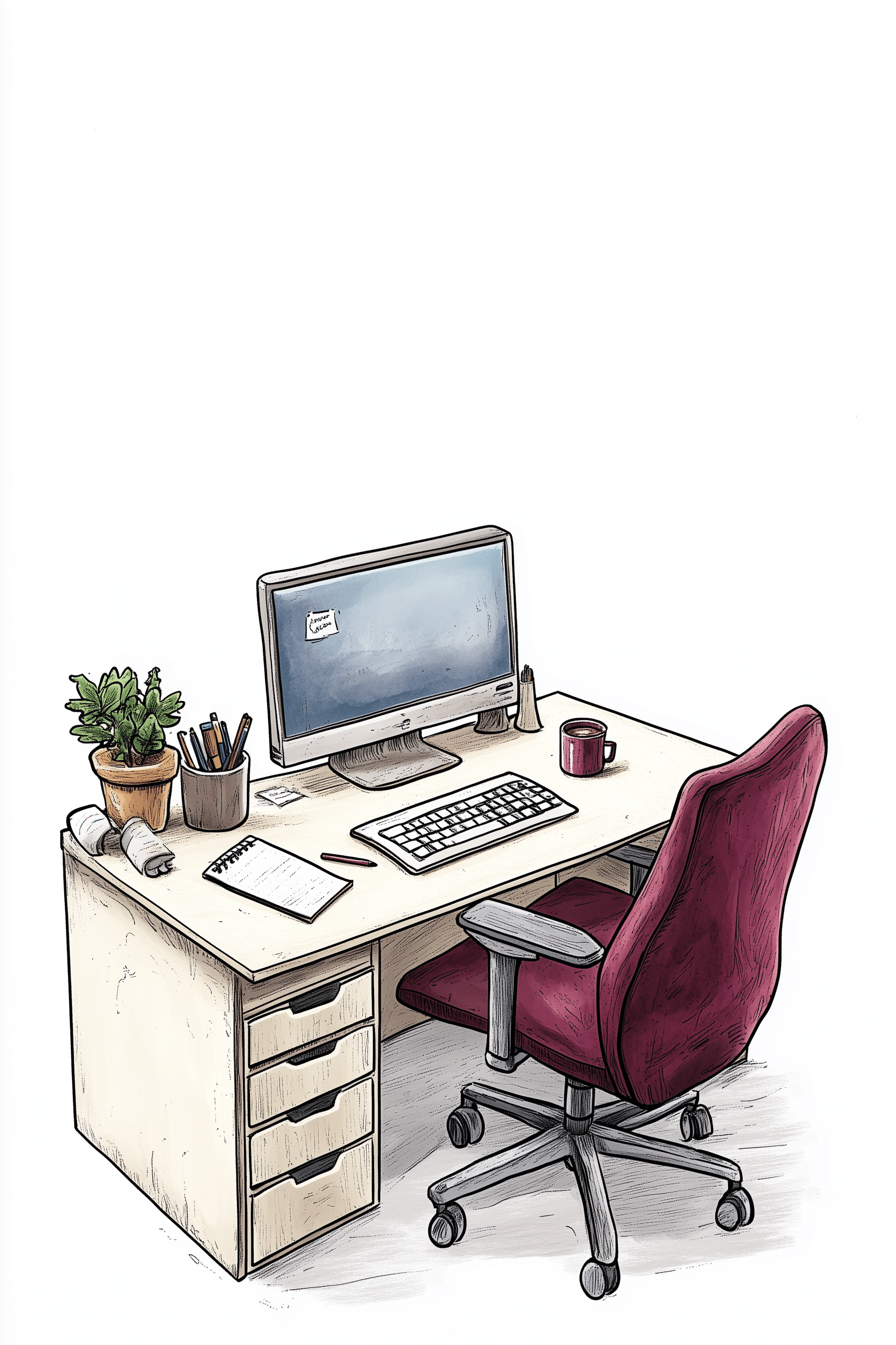 This image showcases a warm and inviting office space with cream-colored walls and soft lighting. The decor is simple yet elegant, creating a calm and productive atmosphere.