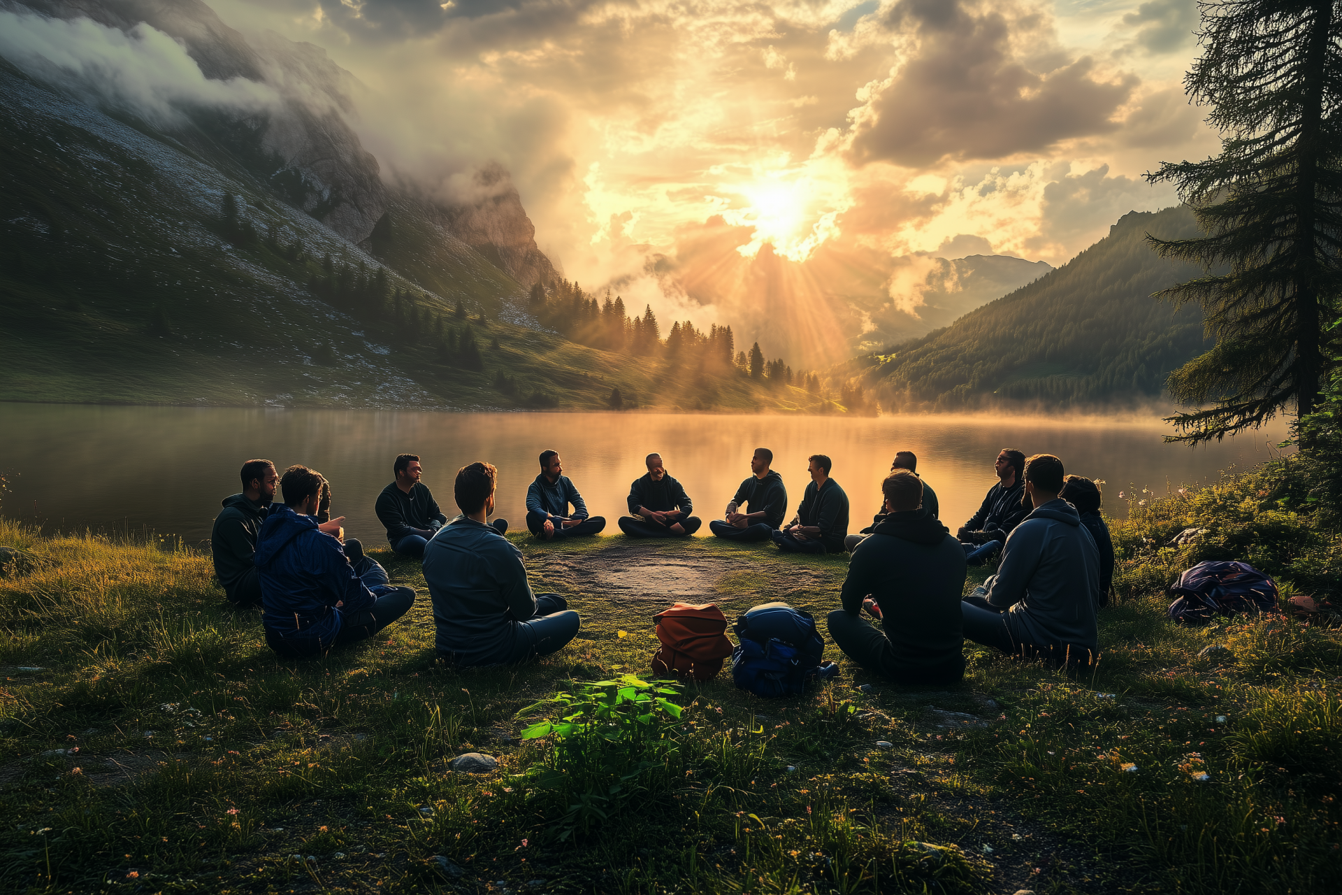 The image showcases a serene forest path shrouded in mist, inviting viewers to explore its depths. Lush green trees tower overhead, their leaves creating a natural canopy that filters soft sunlight onto the ground.