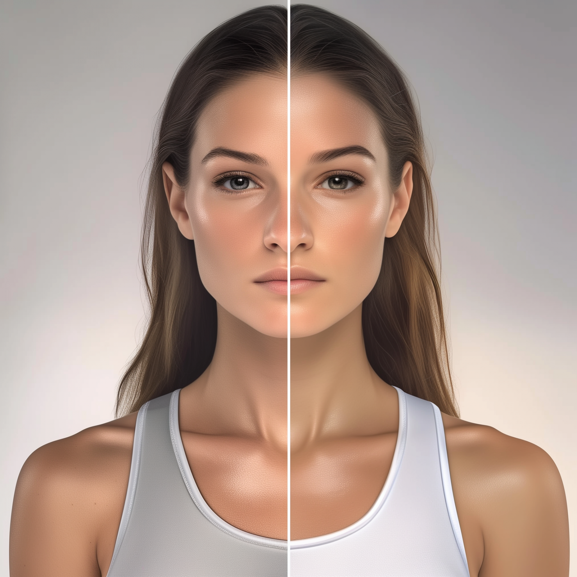 This image showcases a highly detailed and lifelike portrait of a 30-year-old individual. The lighting and textures create a vivid representation, emphasizing the realism and depth in the facial features.