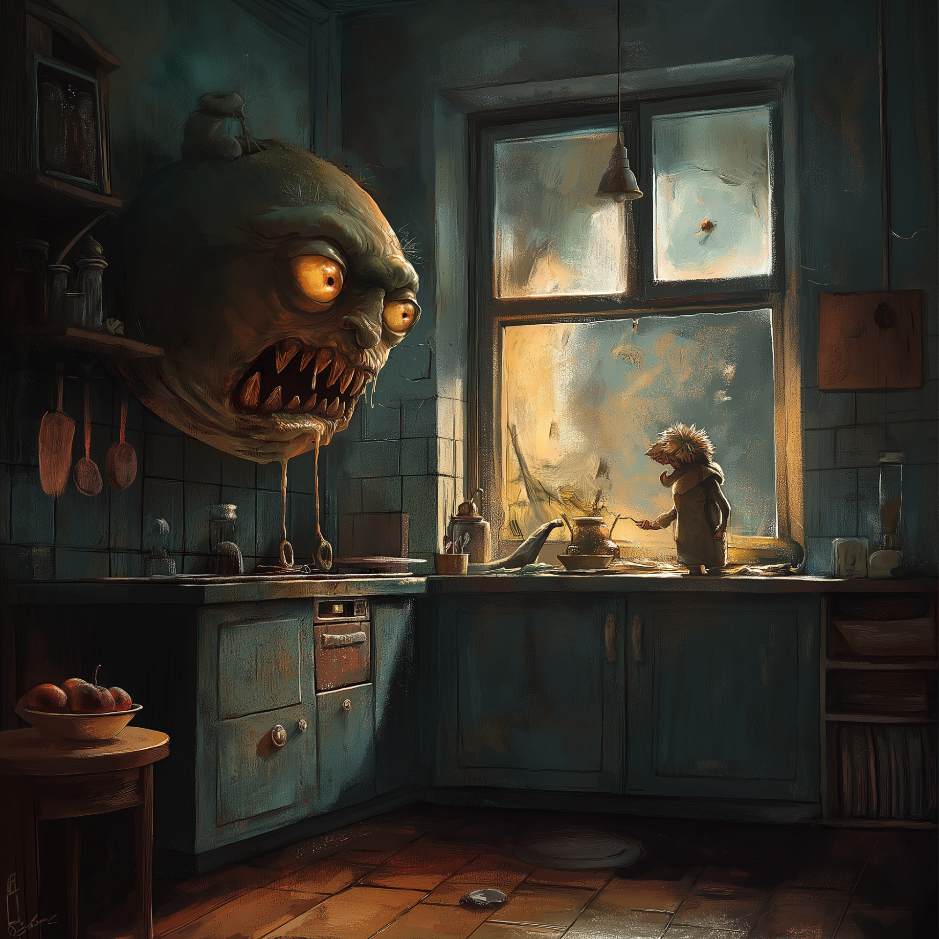 The image captures a vibrant kitchen filled with the warmth of cooking and laughter among three Middle Eastern individuals. The atmosphere feels inviting and communal, with an array of colorful ingredients and cooking utensils visible in the background.