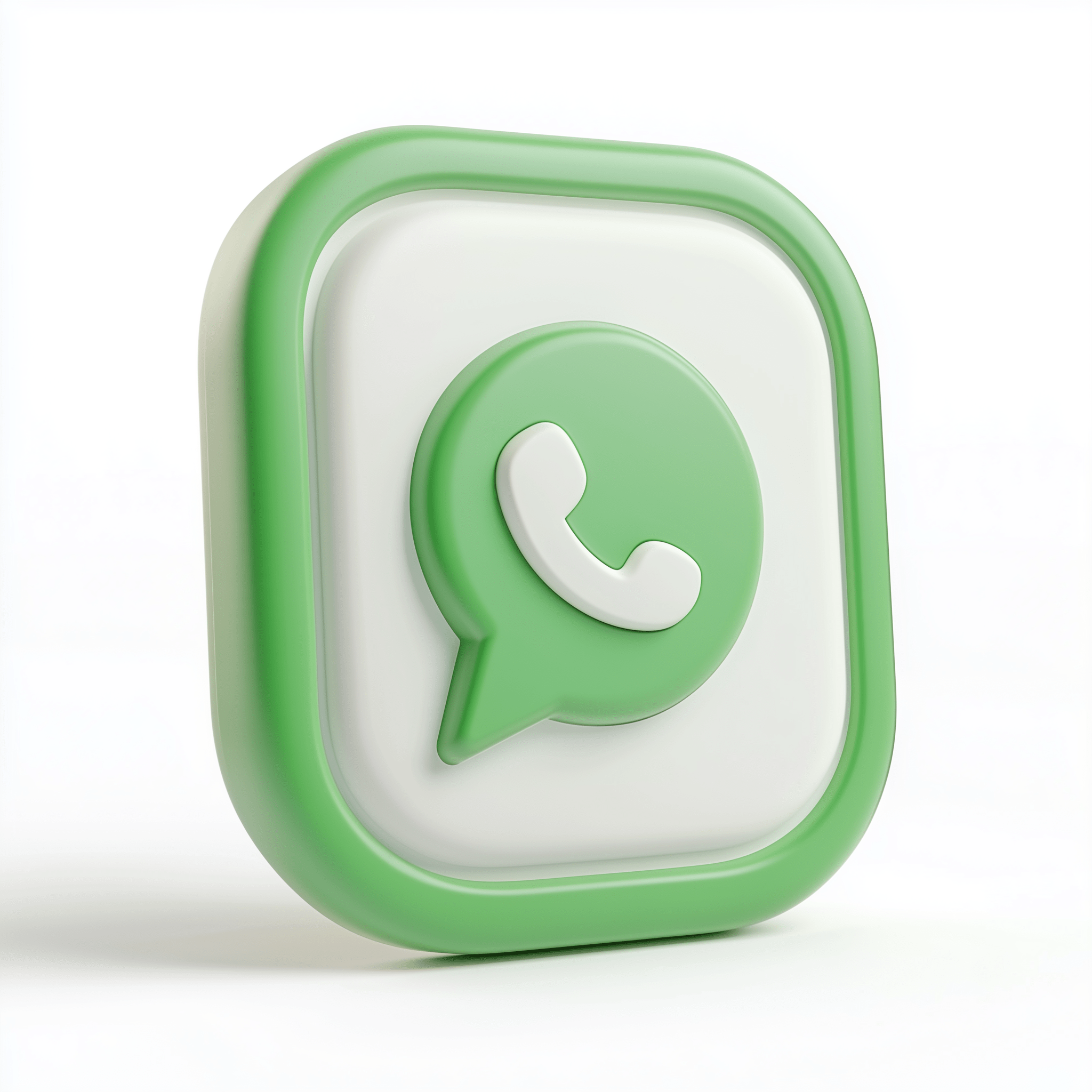 A charming 3D representation of the popular WhatsApp logo, exuding playfulness and modernity. The icon stands out against a clean white background, adding a touch of whimsy to any design.