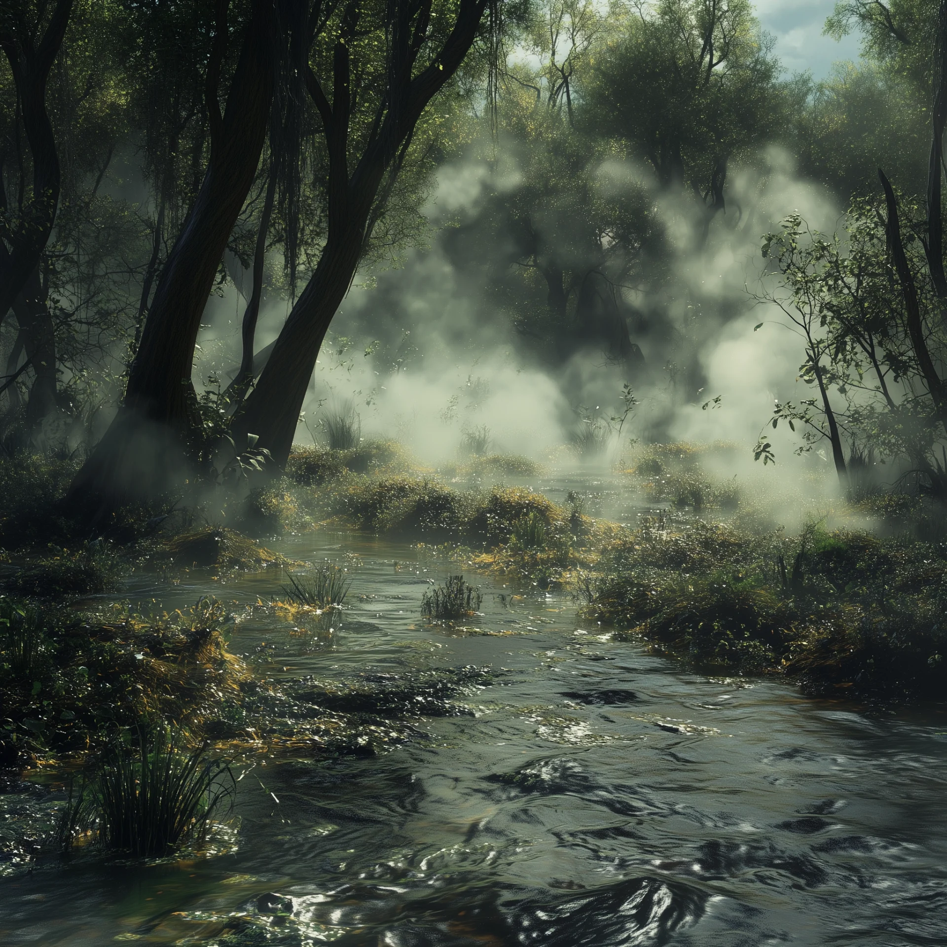 This illustration features a sharper focus on pastel-colored water with delicate flower buds, resembling the style of Anton Semenov. The cellular formations and large scale add a surreal and dreamlike quality to the artwork.