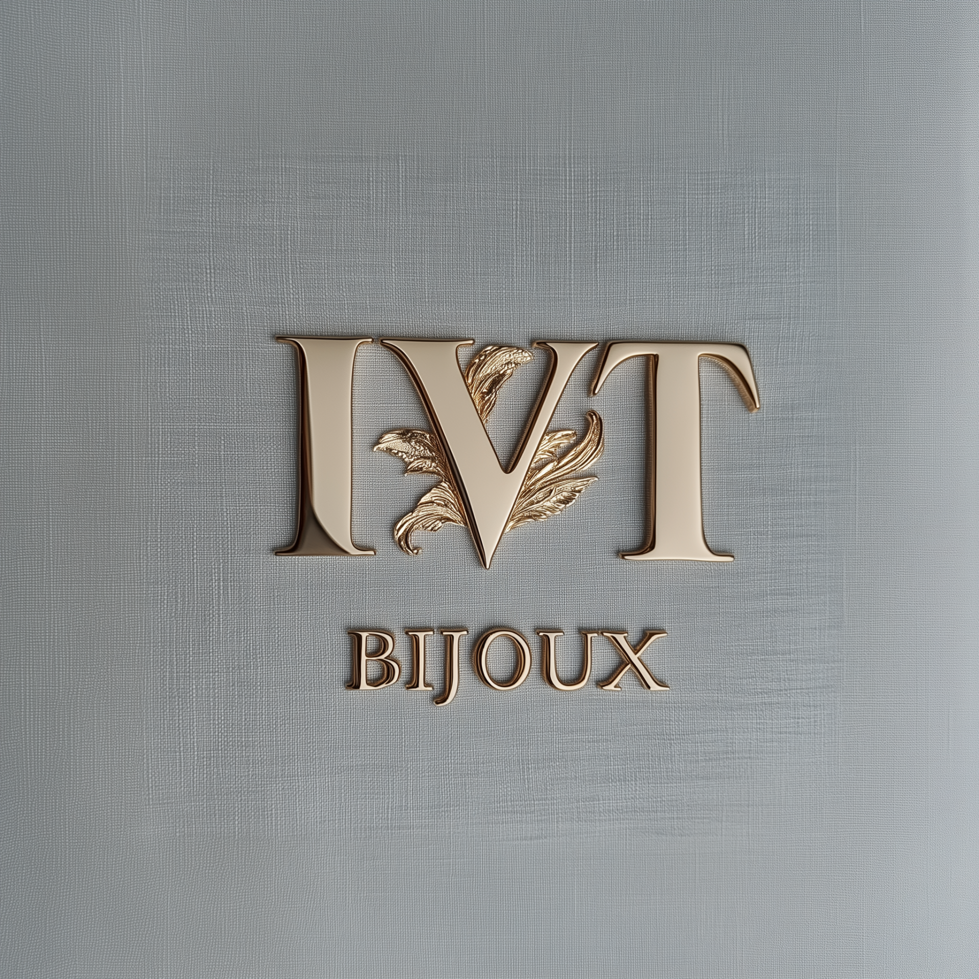 The logo showcases large, intertwined gold initials on a soft light gray fabric background, creating an elegant and luxurious feel. Below the initial design, the word 'BIJOUX' and above it, the word 'DONA' are displayed in smaller gold letters, contributing to the refined aesthetic.