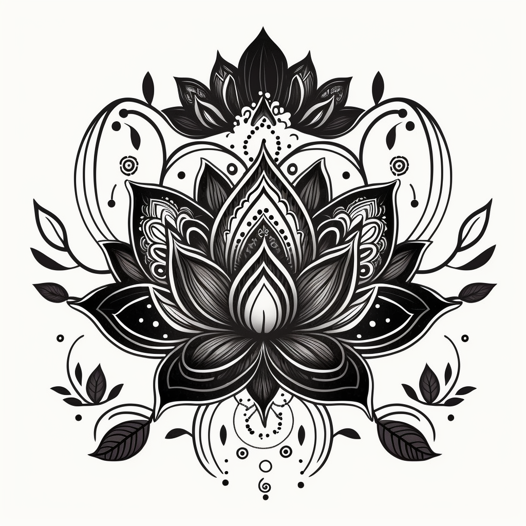 This design features a detailed lotus mandala with intricate patterns, set against a clean white background. The flat, vector style enhances the elegance of the artwork, making it suitable for tattoo inspiration.