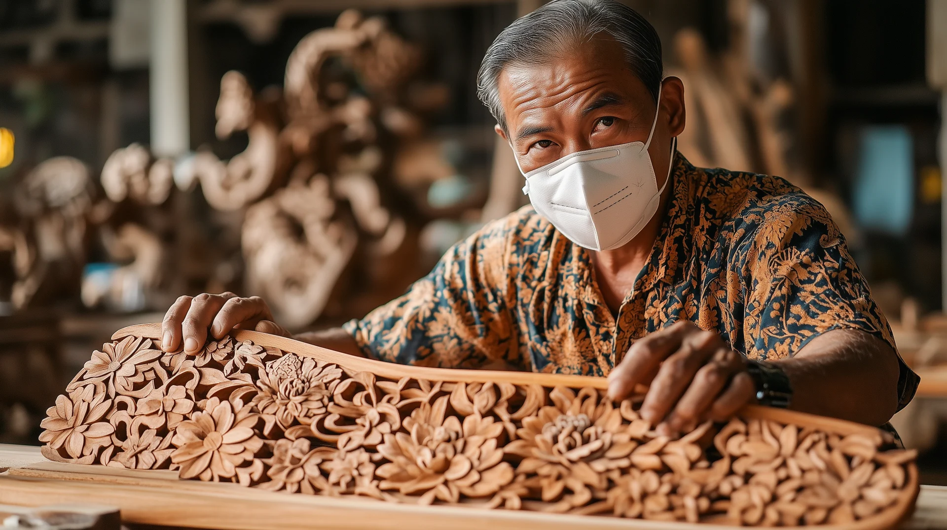 The image captures a focused painter in a weavers' workshop, dressed in authentic medieval attire. The scene is filled with rich colors created by the application of pigments on threads, immersing the viewer in a historical atmosphere.