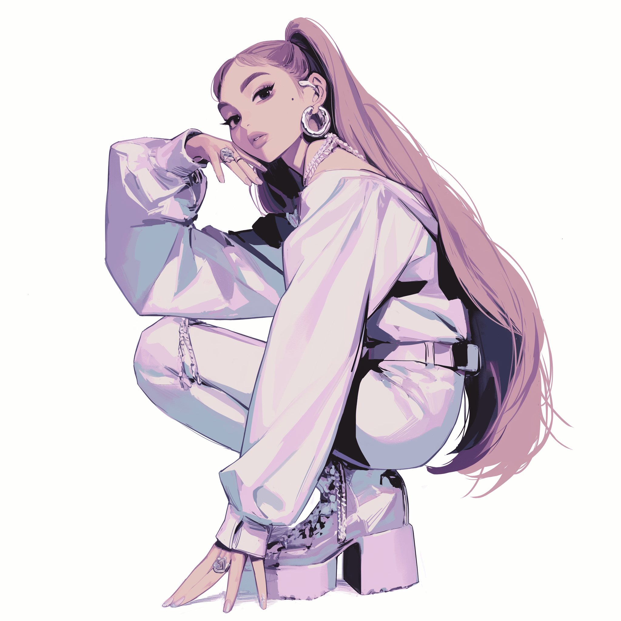 The image captures a full body pose of a singer at a concert, set against a clean white background. The vibrant energy and dynamic posture convey a sense of performance and excitement.