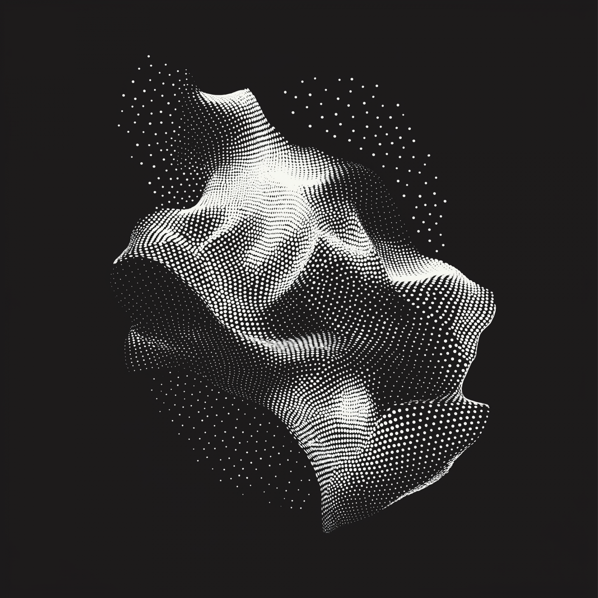 This image features a striking contrast of a black background adorned with white, grainy dots forming an abstract shape. The minimalist design enhances the grainy texture, creating a visually appealing vector illustration.