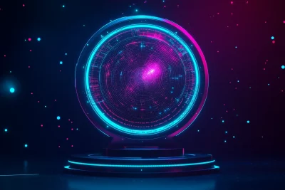The image showcases a serene interior design with round coffee tables and an armchair. Soft natural light fills the space, highlighting the minimalist style and clean lines against a muted beige backdrop.