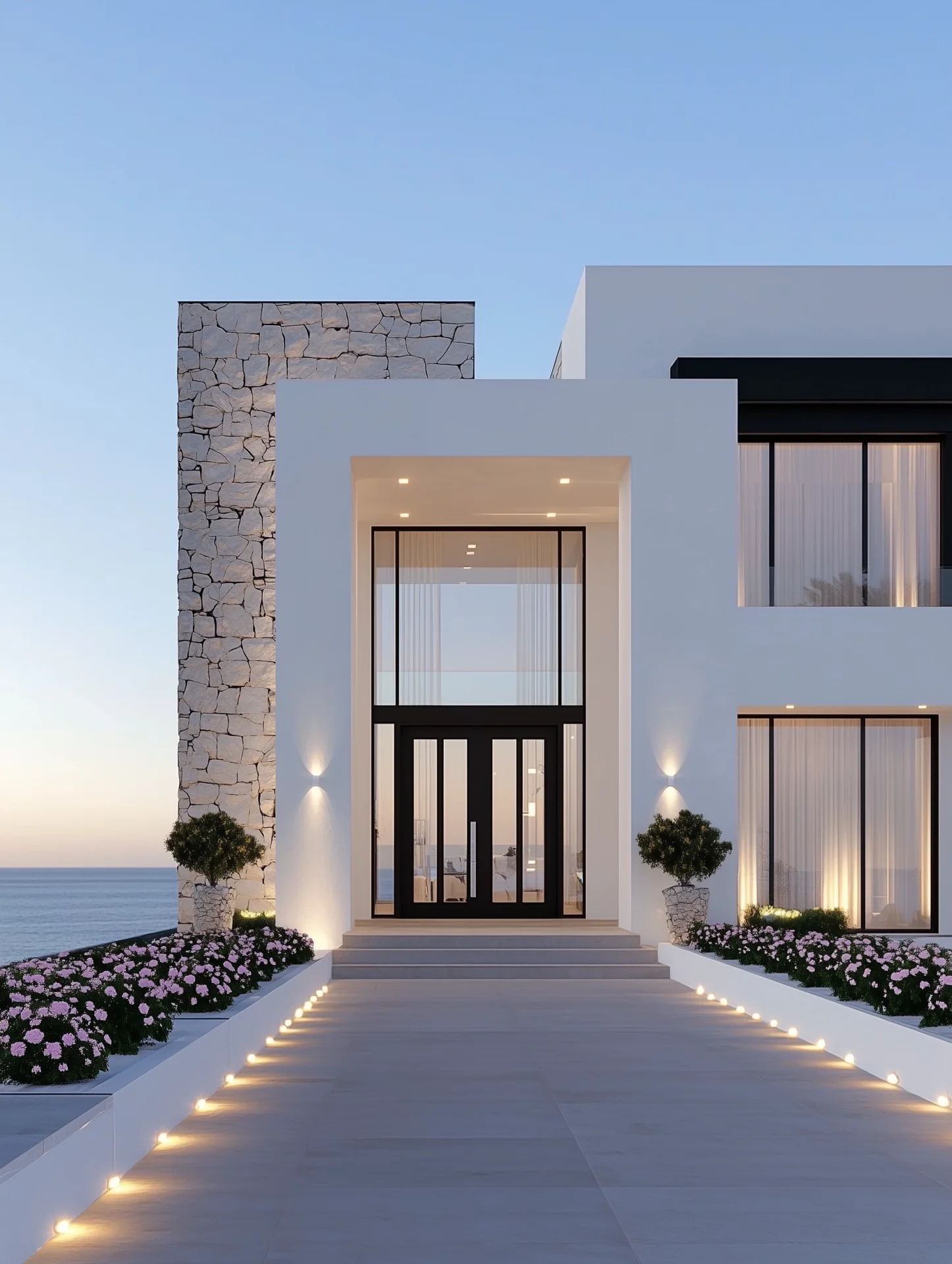 A dark-mode image showcasing a professional architectural presentation board featuring a modern minimalist and sustainable house design. The focus is on architectural design technology and a high-quality aesthetic.