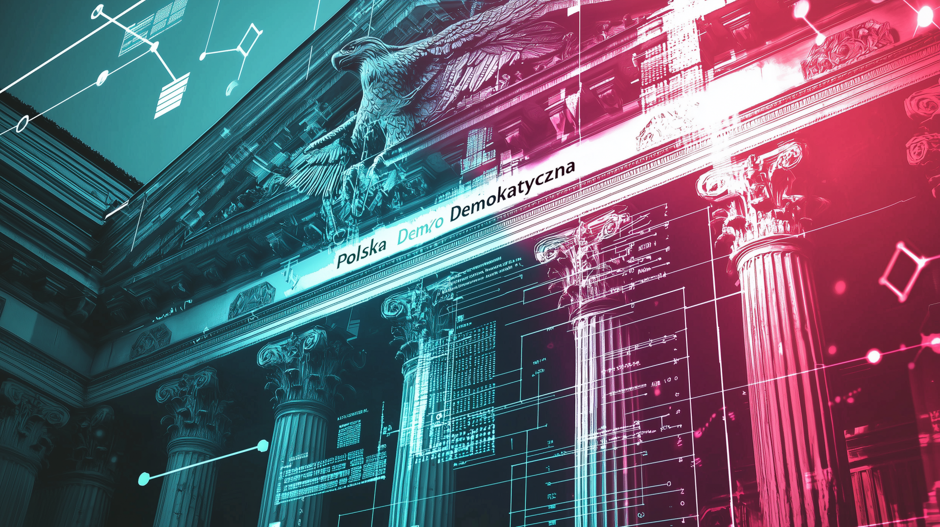 The image depicts a modern farming landscape enhanced by technology, showcasing automated machinery working alongside crops. High-tech data analysis tools are integrated into the agricultural environment, creating a seamless blend of nature and innovation.