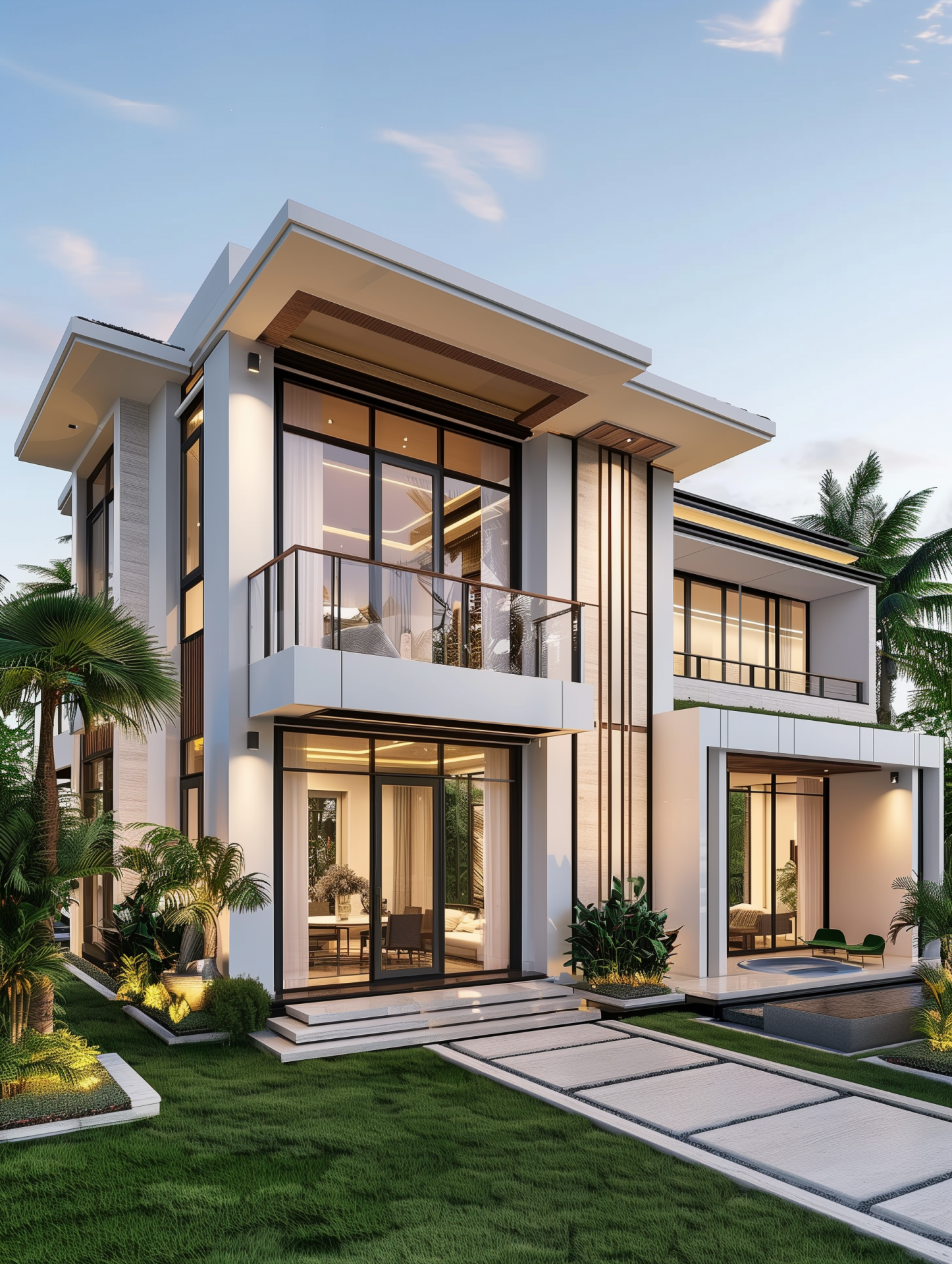 The image showcases a contemporary two-story building with large windows and an open layout. Its sleek design and minimalist aesthetics create a sense of sophistication and modern living.