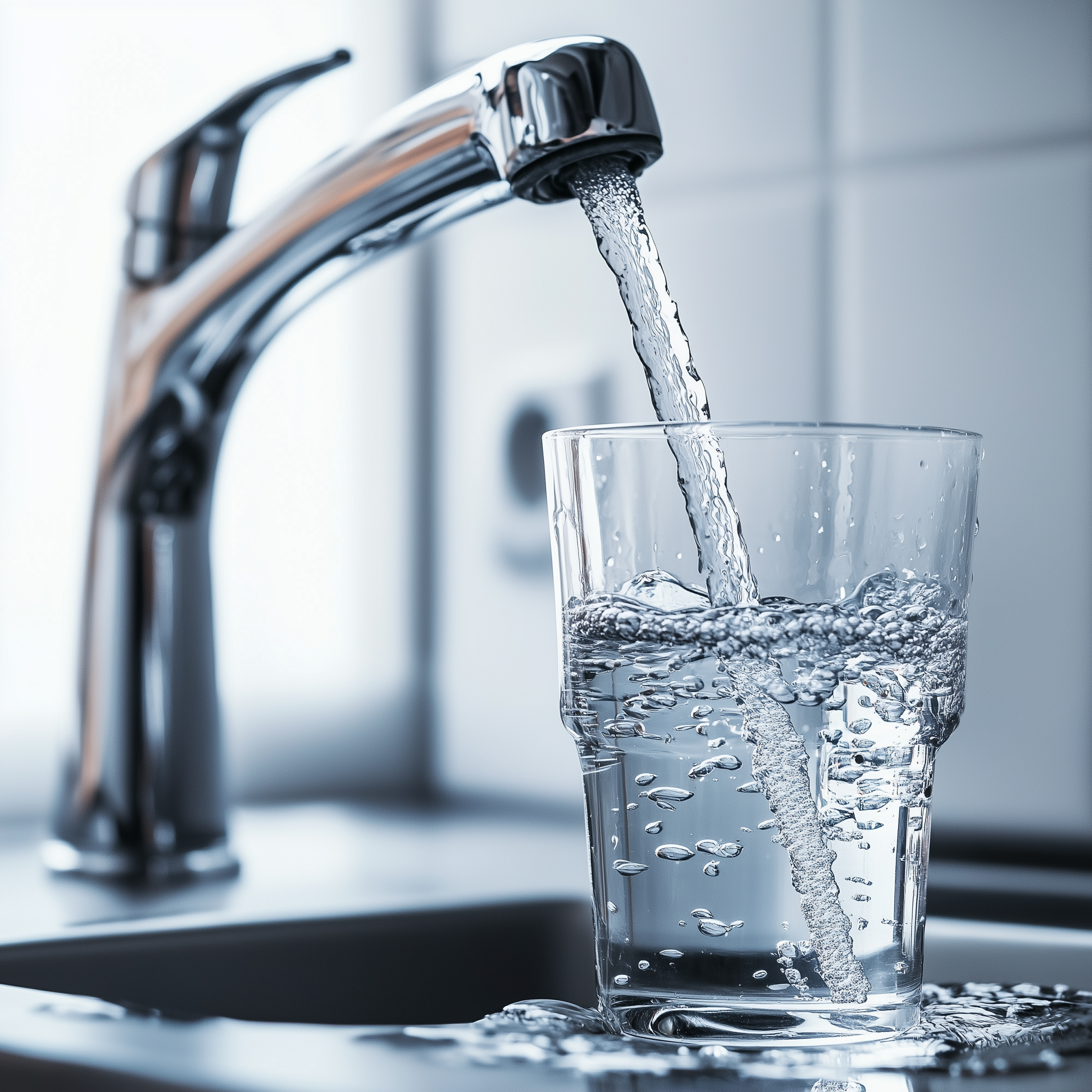 This image showcases a modern kitchen with sleek lines and a minimalistic aesthetic. The focus is on water conservation, beautifully captured through realistic details that evoke a sense of responsibility towards nature.