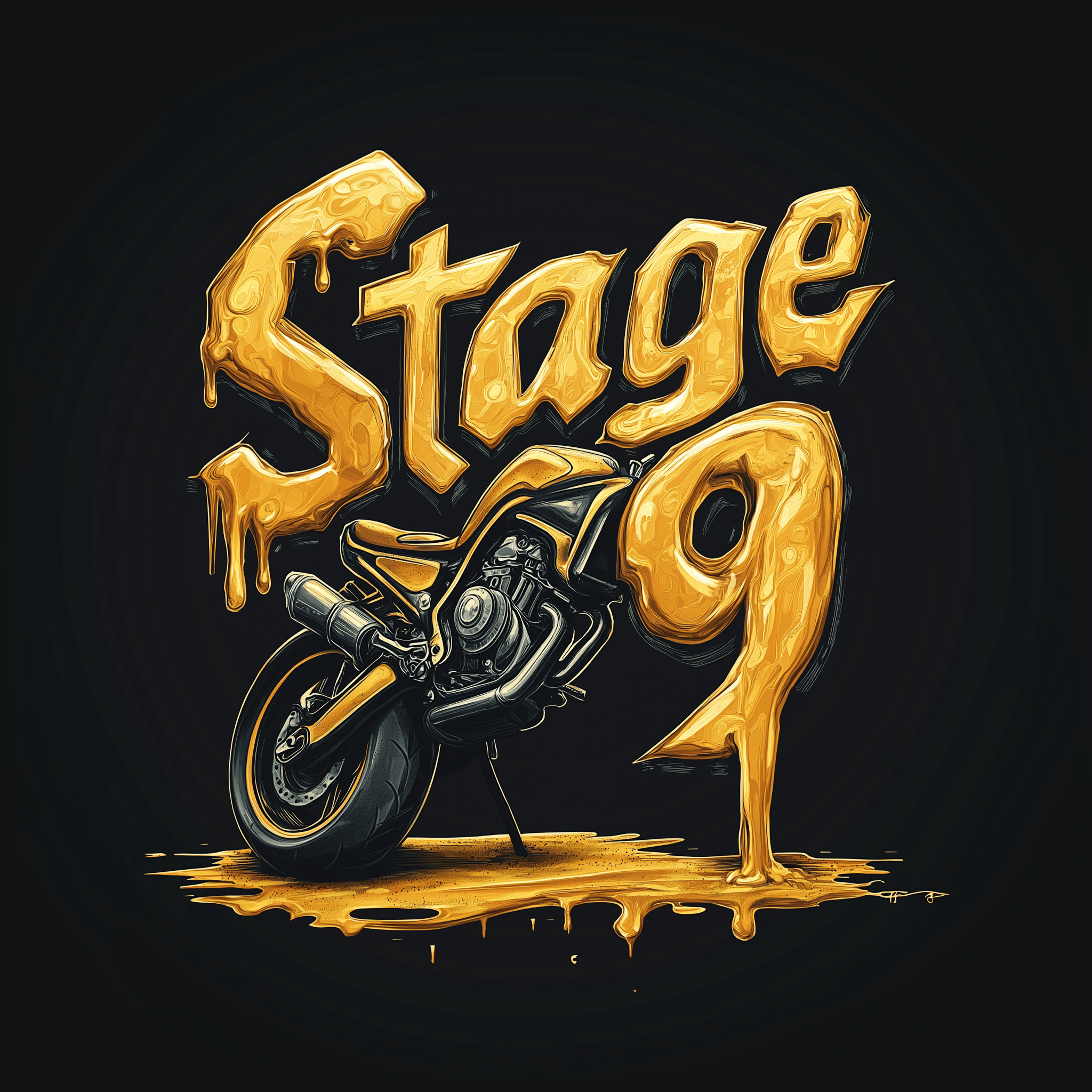 This image features a striking industrial logo that embodies the essence of motorcycle culture. Golden honey drips subtly from selected letters, creating a unique and visually captivating effect, reminiscent of a gritty garage atmosphere.