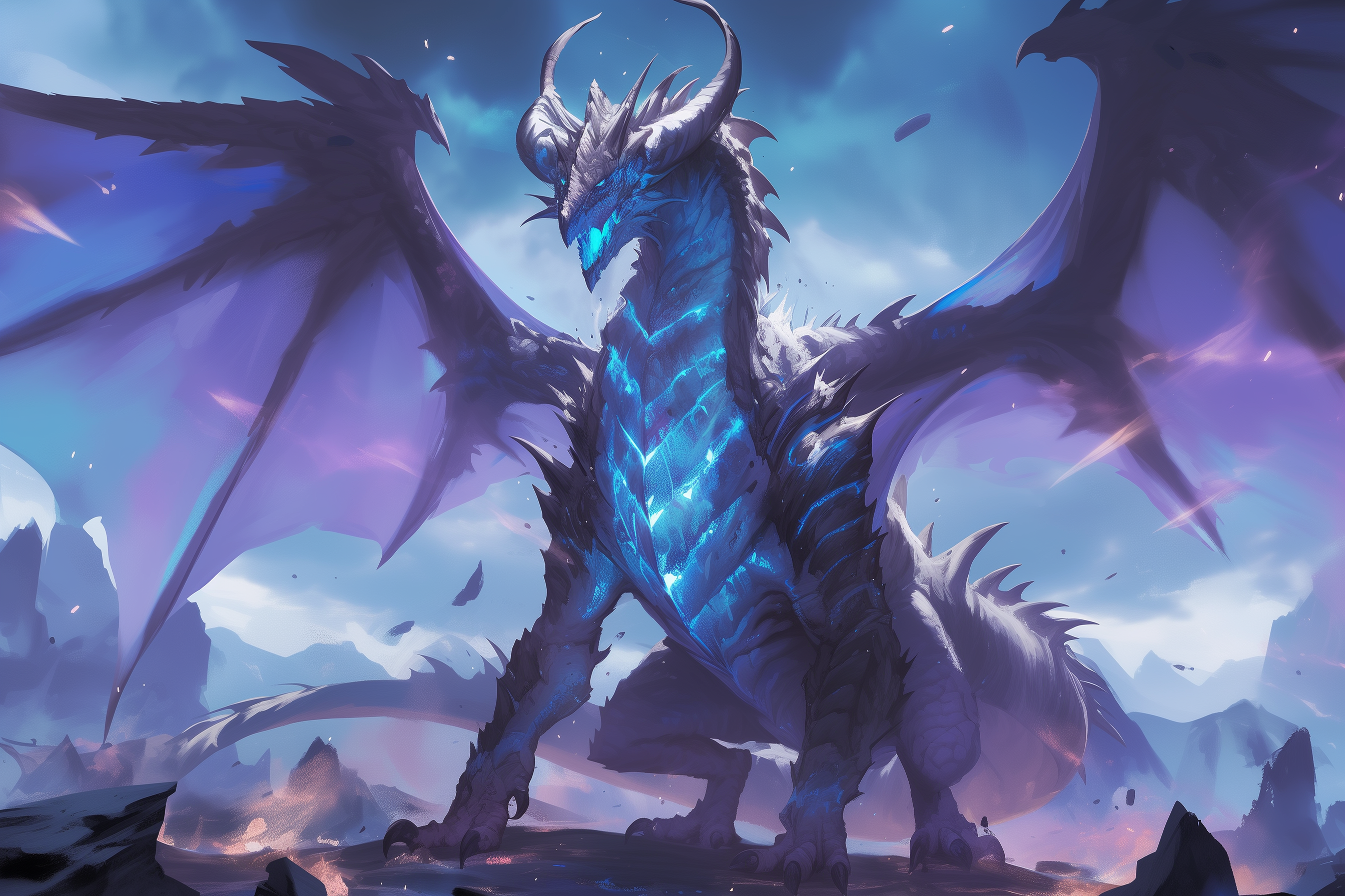 The image depicts a fearsome and majestic dragon, characterized by its massive whiskers and glimmering scales. The vibrant colors and intricate runes on its body create a high fantasy feel, enhanced by ultra-detailed digital art techniques.