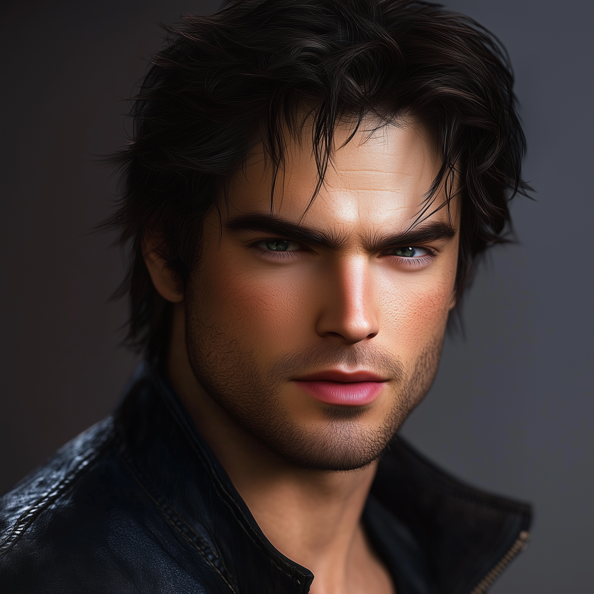 This high-definition photo features a man with dark hair and piercing eyes, evoking a sense of mystery and intrigue. The strong facial features and intense gaze create a captivating and dramatic atmosphere.