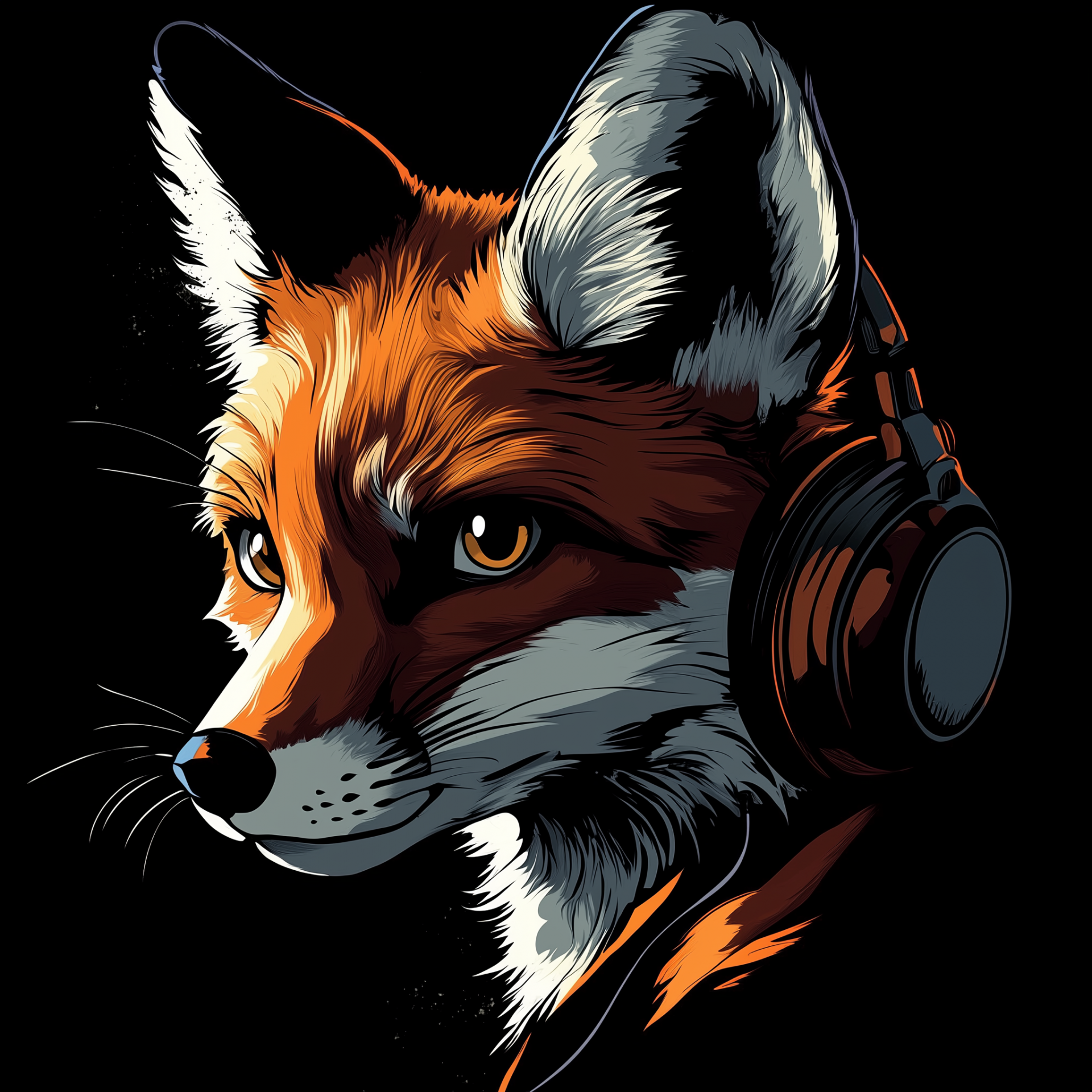 This close-up view showcases a fox's face partially illuminated by light. The contrasting black background enhances the fox's curious and determined expression.