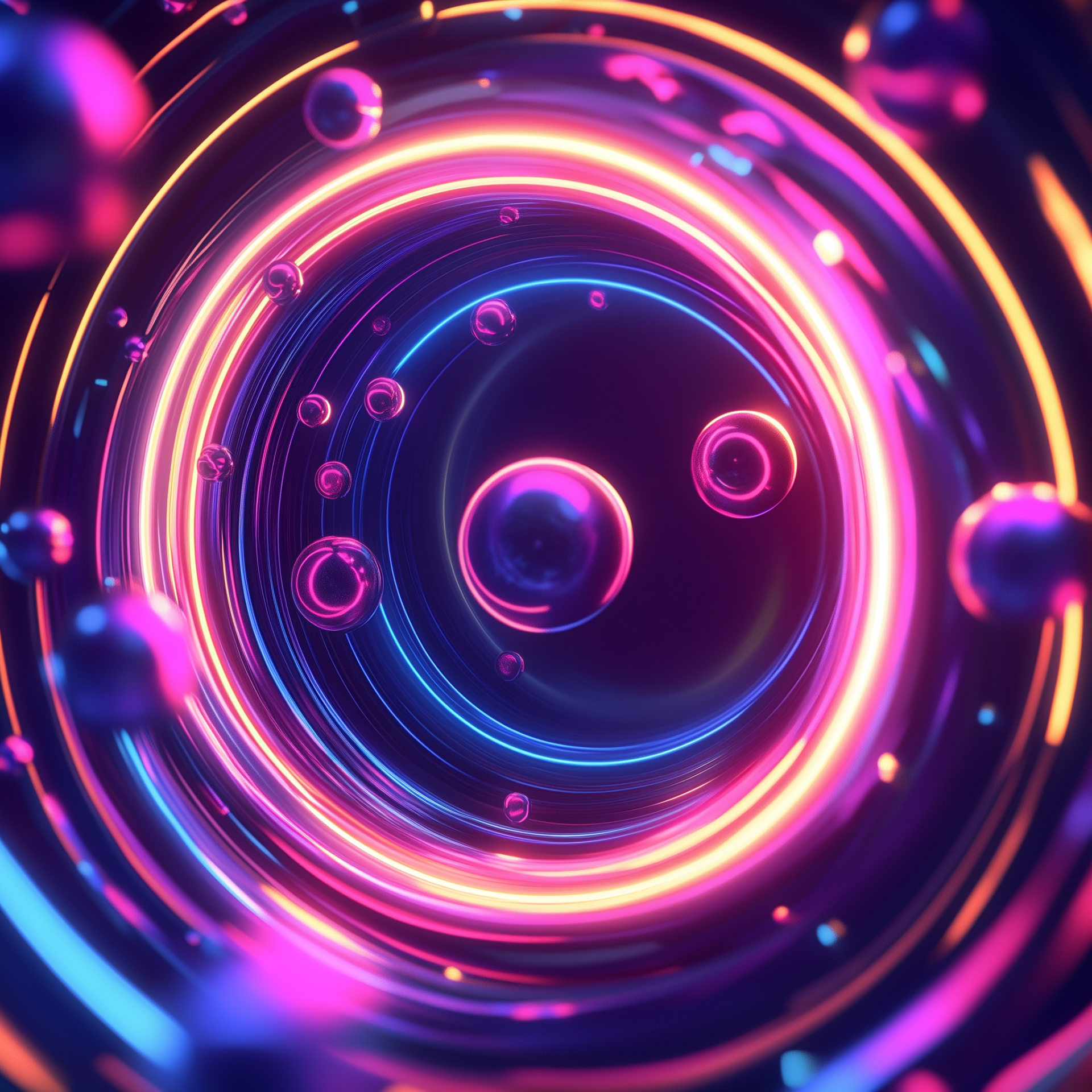 The image showcases vibrant neon streaks that radiate from a central circle, evoking a sense of dynamic motion. Viewed from above, it captures the essence of a fantastical scene with flowing shapes reminiscent of water disturbed by a stone's ripple.