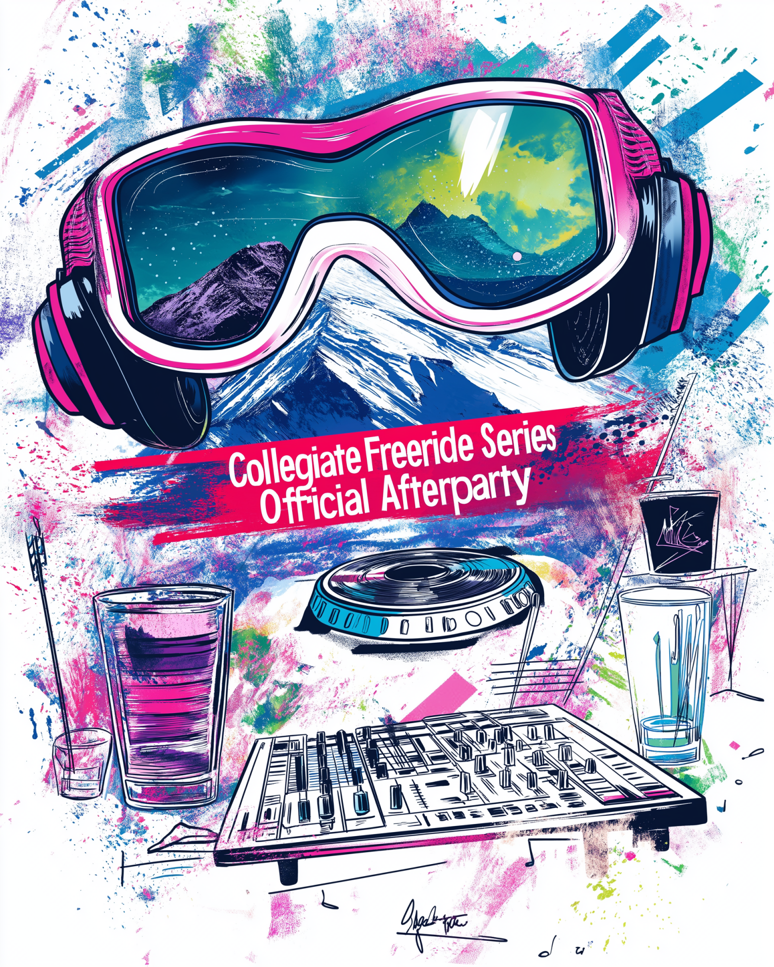This artwork features a vibrant collage style with bold strokes in neon reds, blues, and whites, evoking a nostalgic 80s vibe. The energetic colors and dynamic composition create an immersive visual experience.