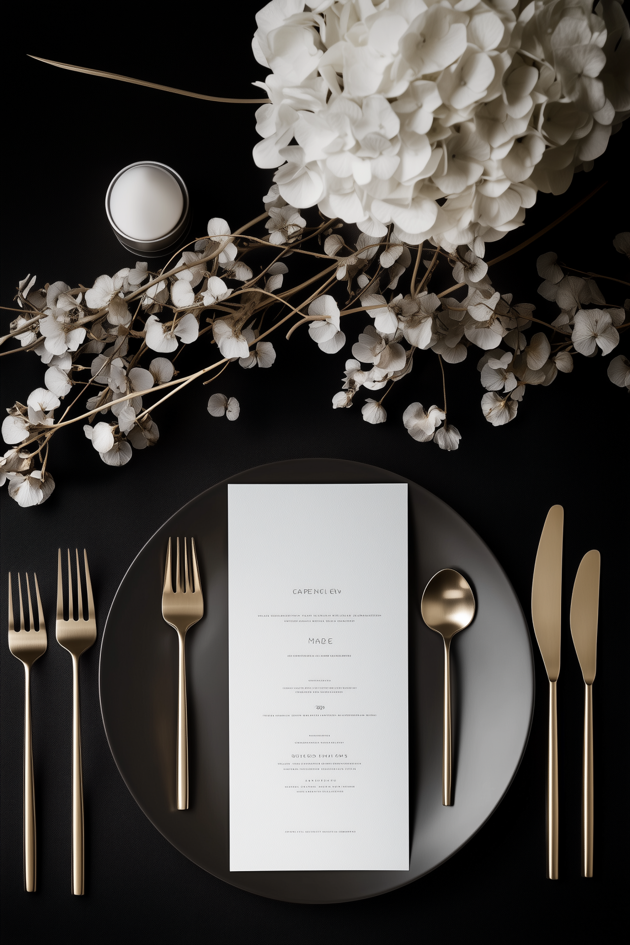 This image features a sleek and classic design for a New Year's menu, characterized by its minimalist style. The elegant layout conveys sophistication, making it perfect for a festive celebration.