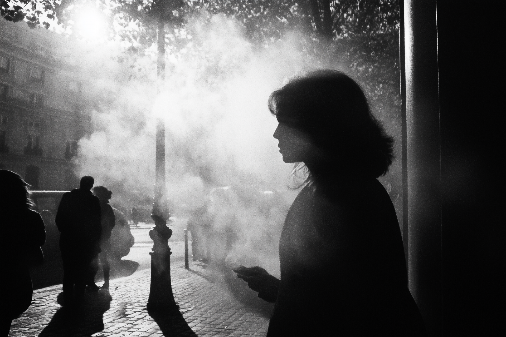 This photograph captures the timeless essence of Paris through striking black and white contrasts. The moody atmosphere evokes a sense of nostalgia, showcasing the city's iconic architecture and streets.