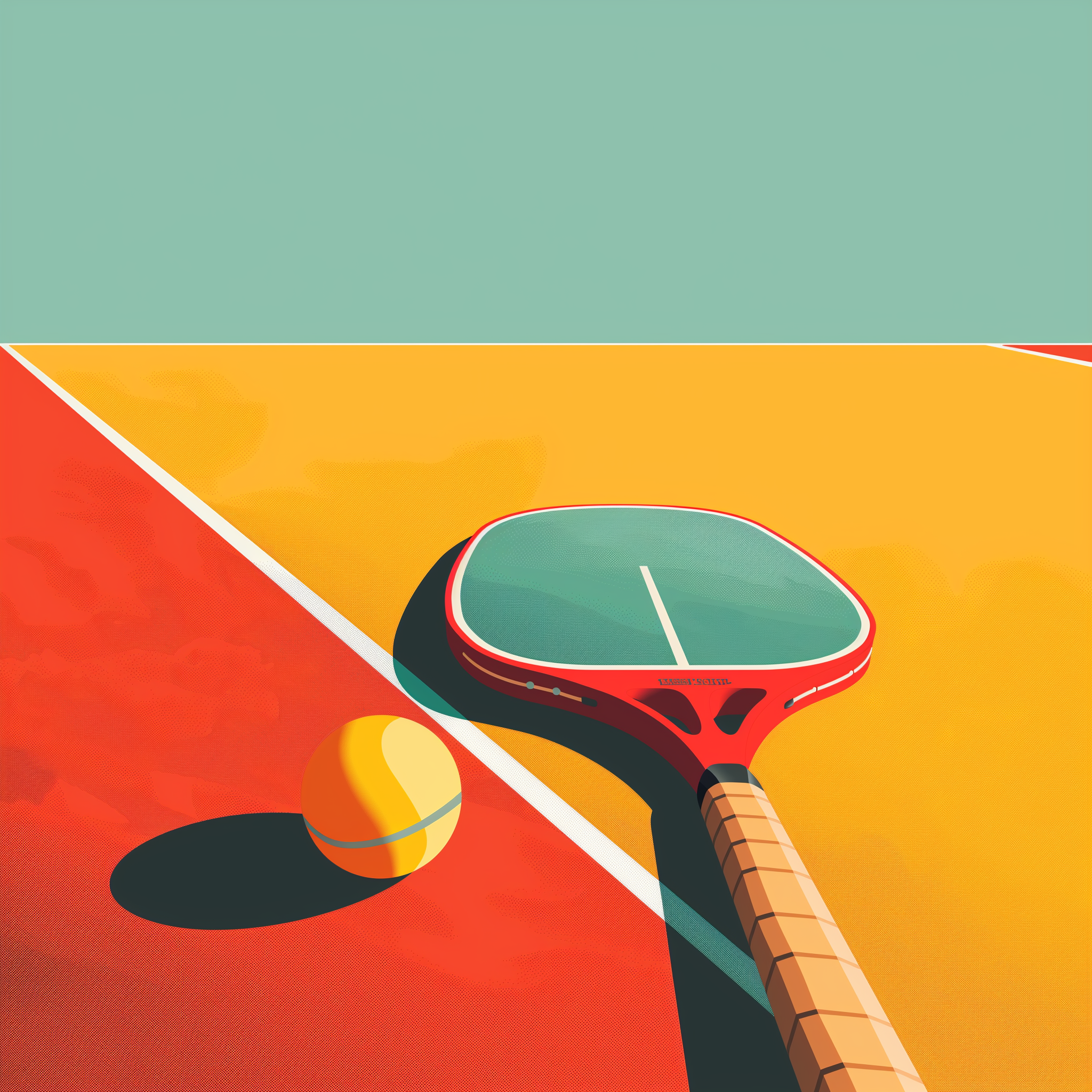 This image features a flat, realistic background that sets an inviting tone for the sport of pickleball. The elements are arranged in a harmonious manner, contributing to an overall vibrant and energetic atmosphere.