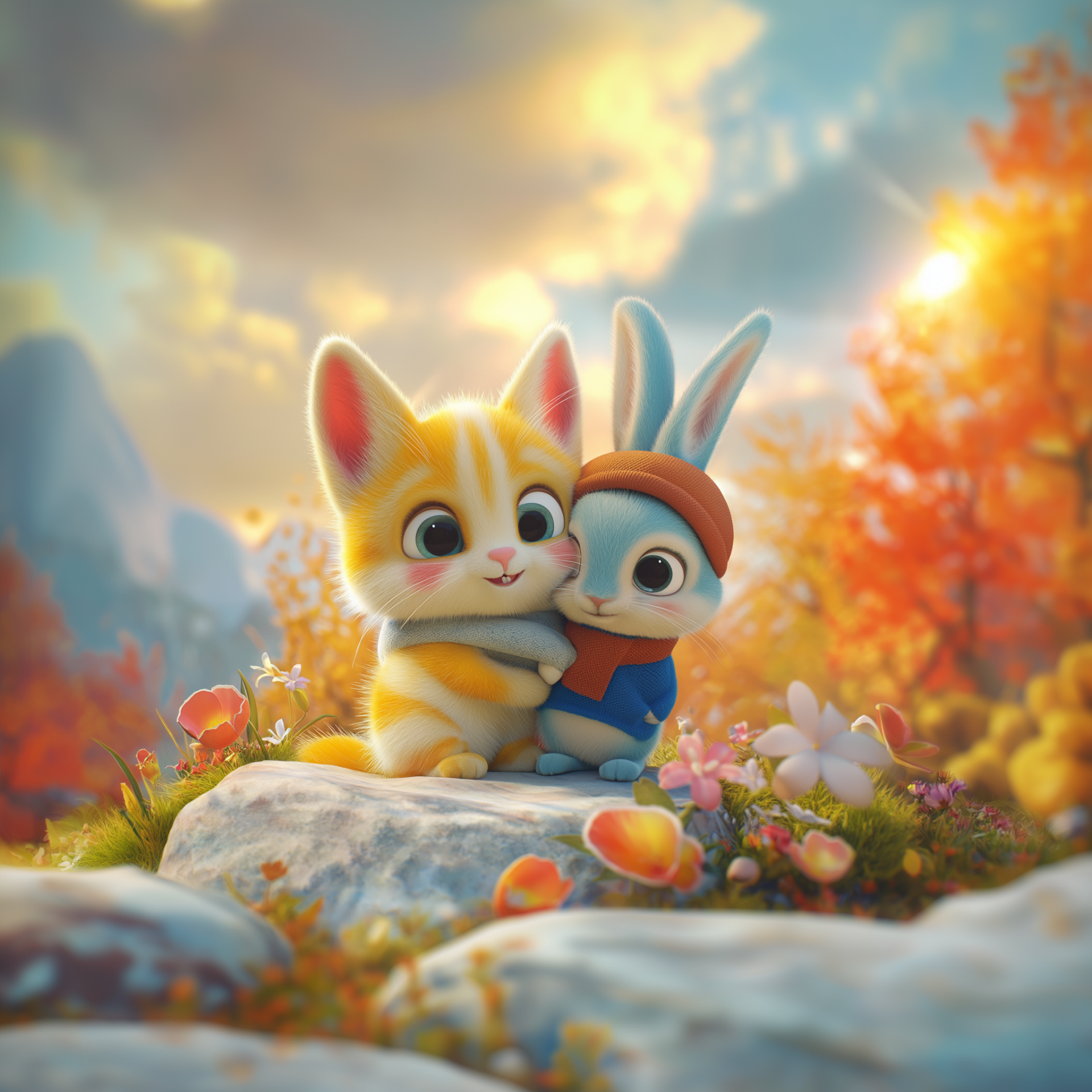 This illustration depicts vibrant and engaging 3D cartoon characters in a lively setting. The style is colorful and whimsical, creating a fun and playful atmosphere.