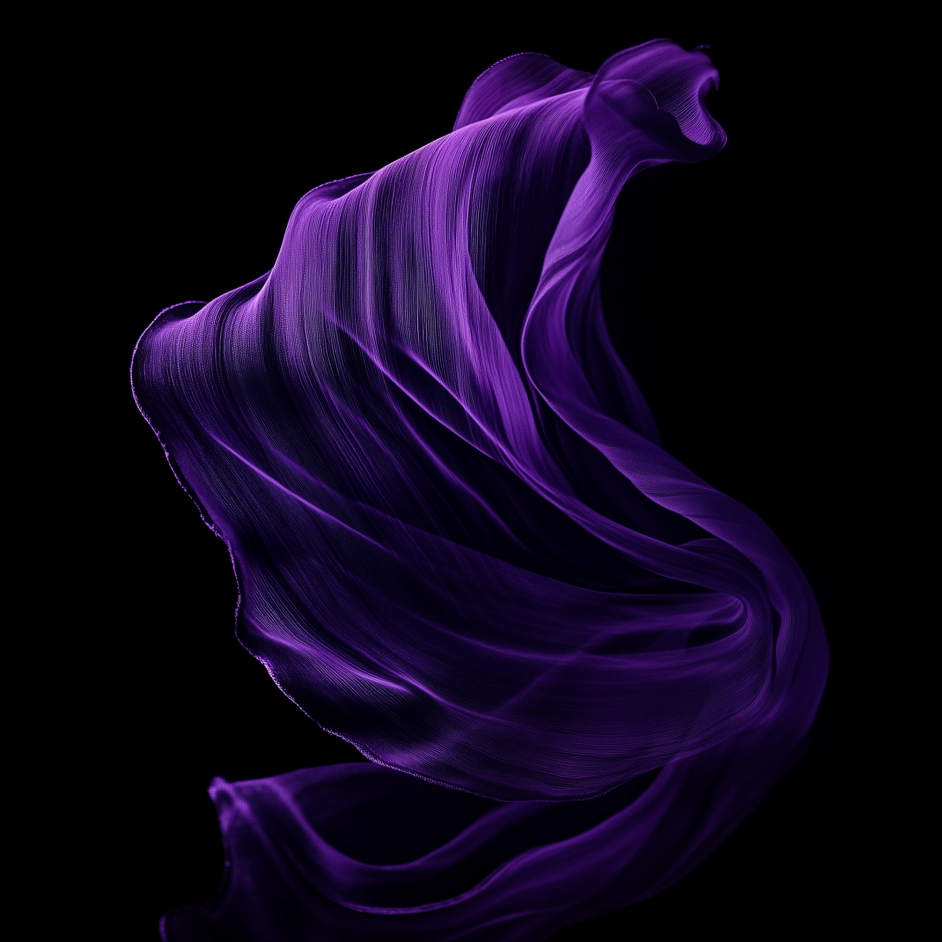 This image features a vibrant solid purple color set against a stark pitch black background. The contrast creates a striking visual effect that captures attention with its simplicity and boldness.