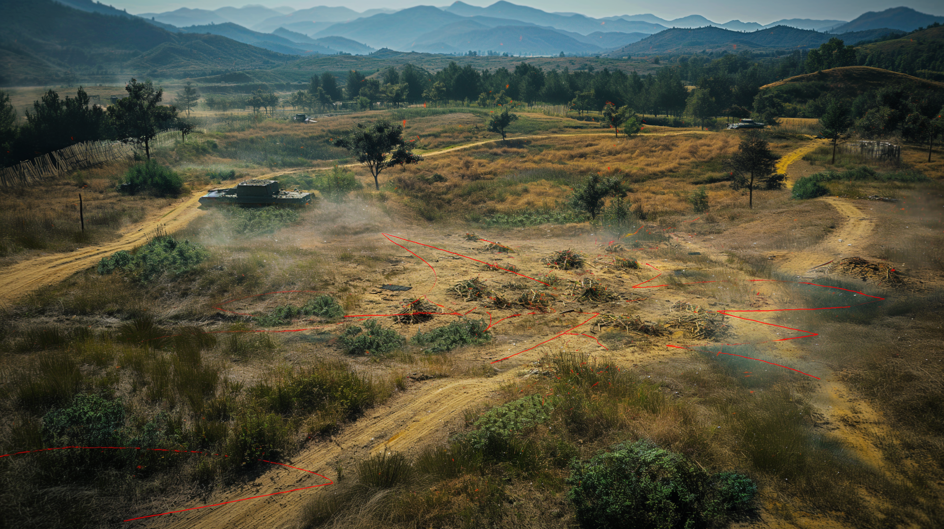 A group of individuals in protective gear are seen collaborating on a field. The atmosphere is dynamic, reflecting teamwork and preparedness.