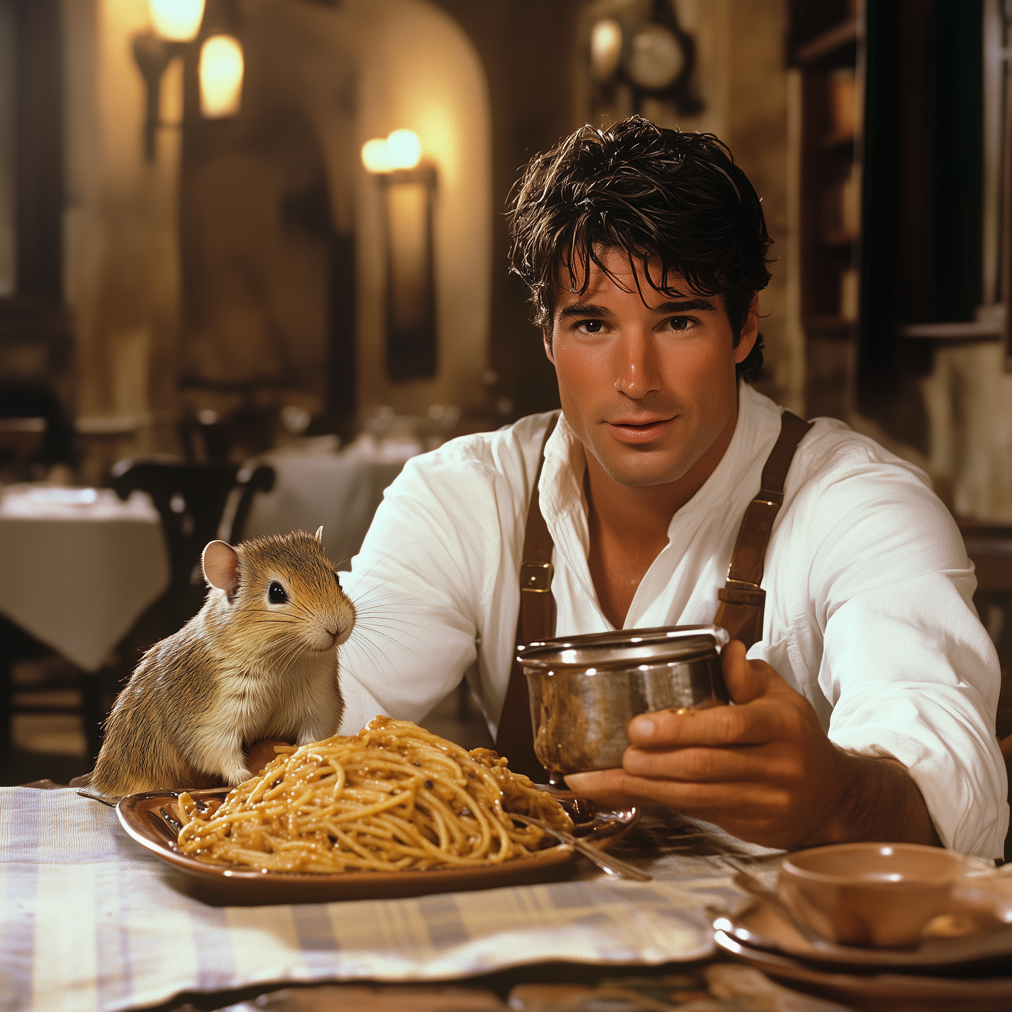 The image captures a warm and inviting atmosphere with a dinner table set for a romantic Italian meal. Soft lighting enhances the intimate setting, making it feel cozy and charming.